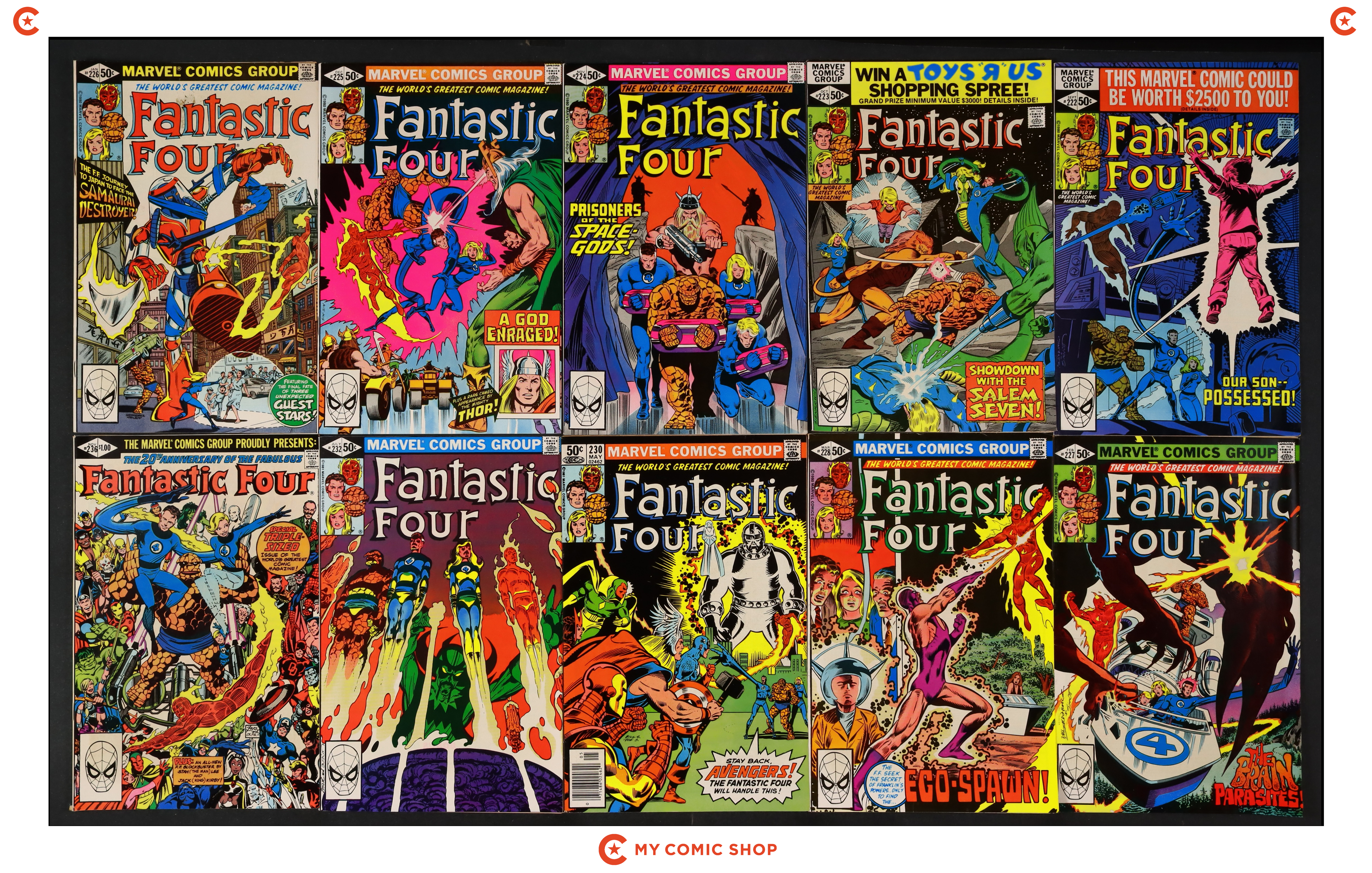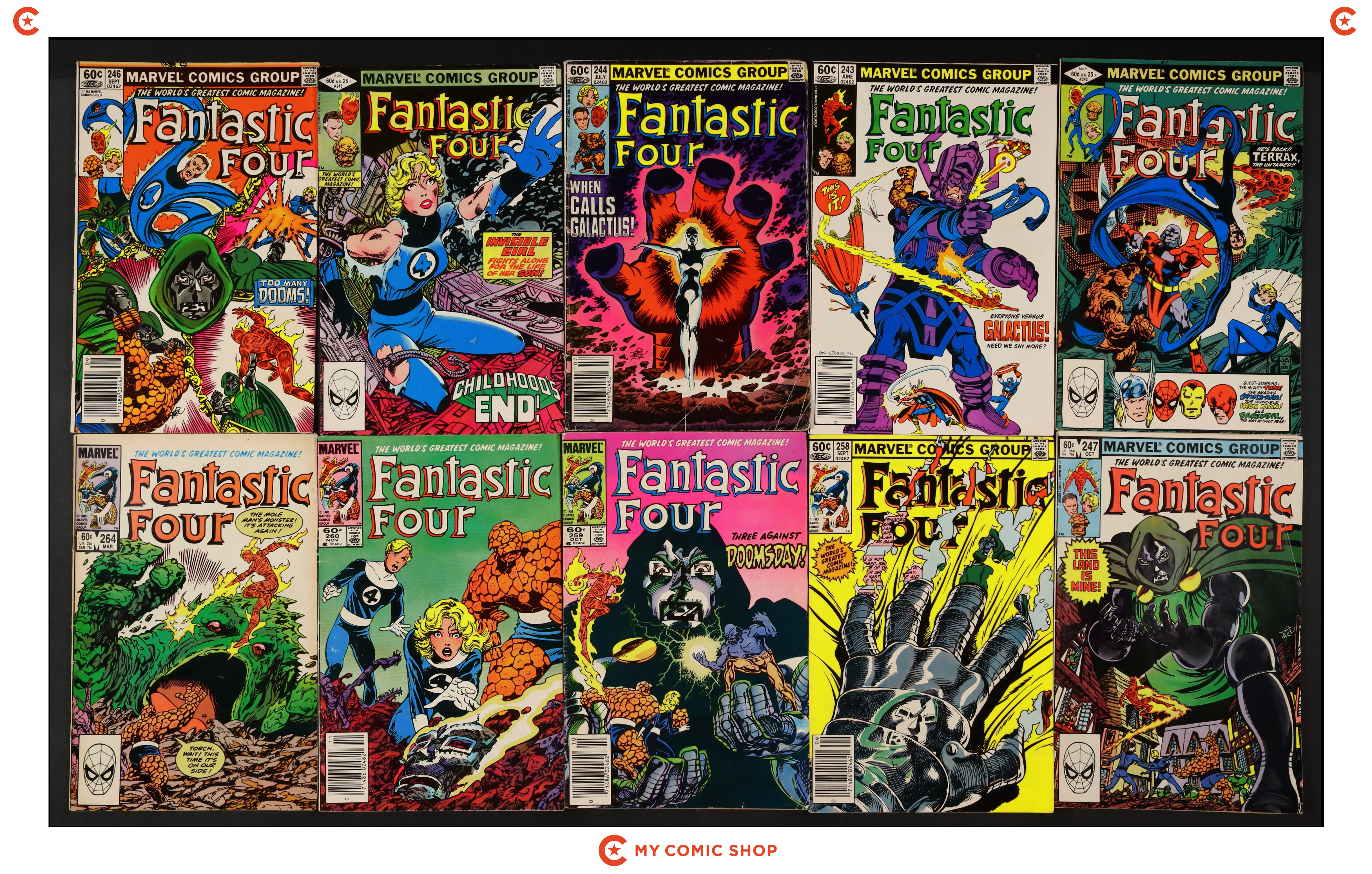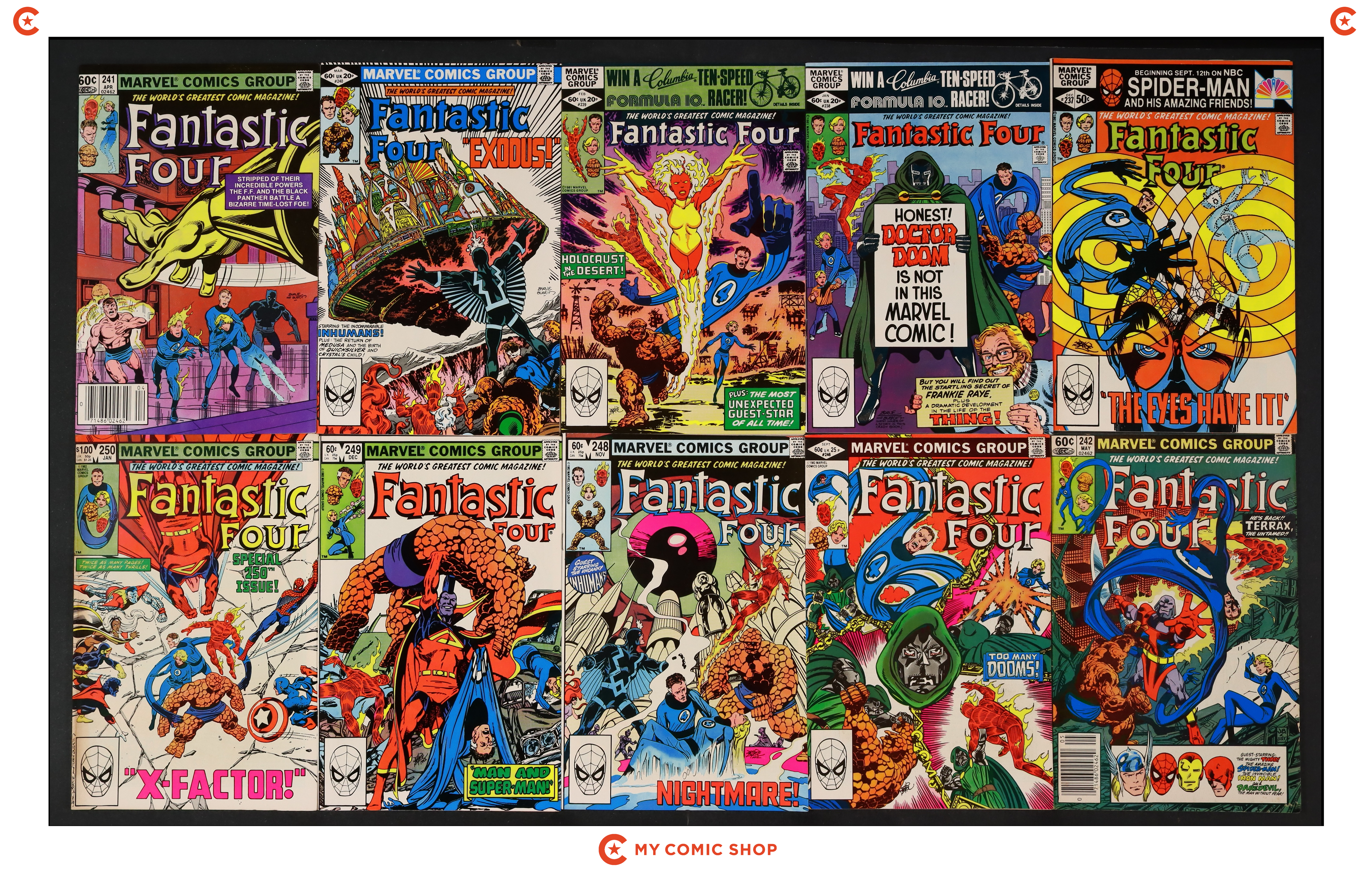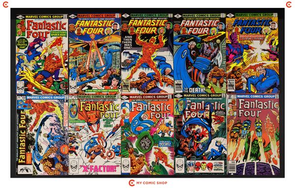 Issues 237, 238, 239D-241D, 242D, 248, 249D, and 250 of Fantastic Four (1961 1st Series). Most will grade in the VF to FN range with a couple grading closer to VG.