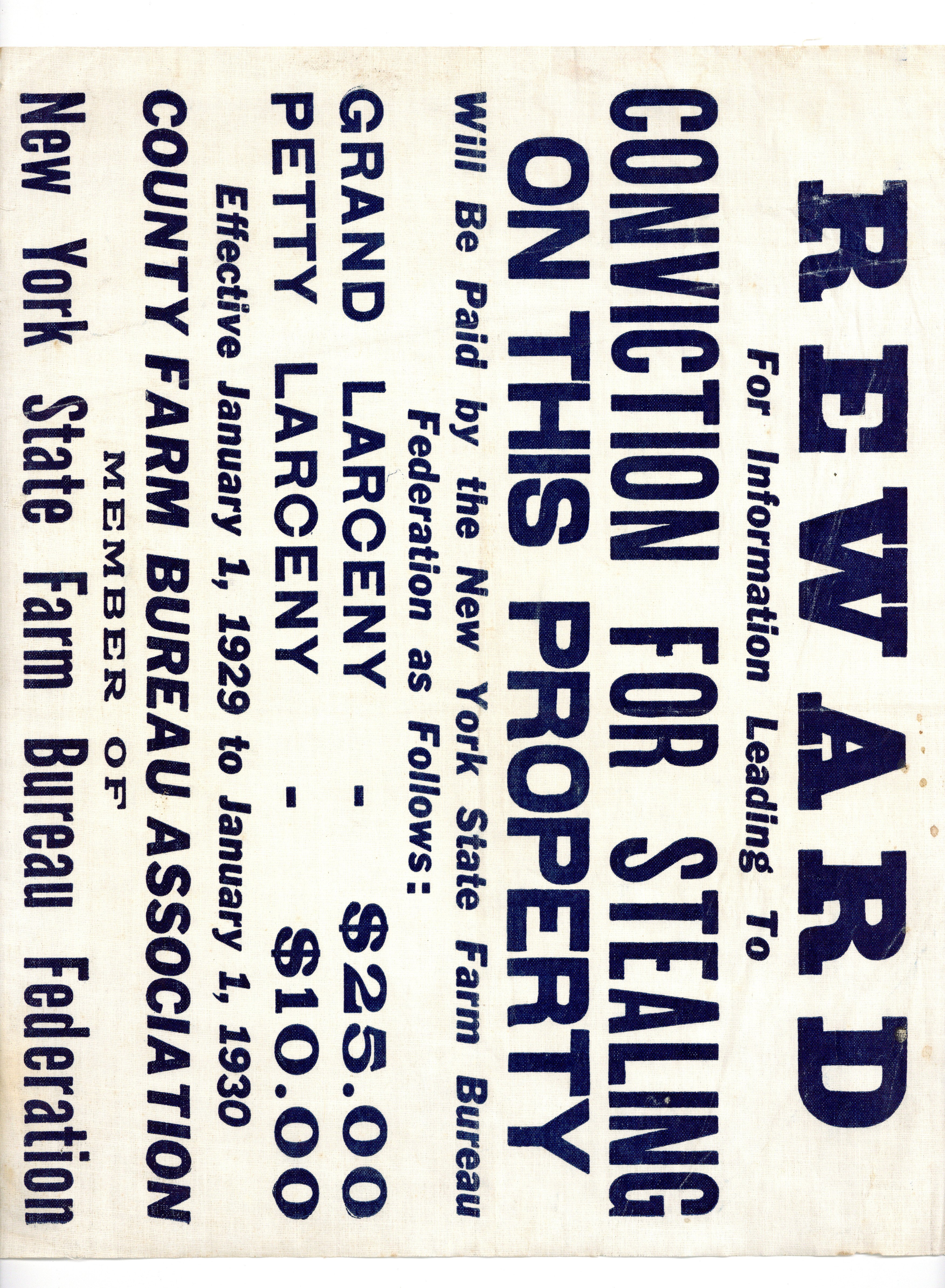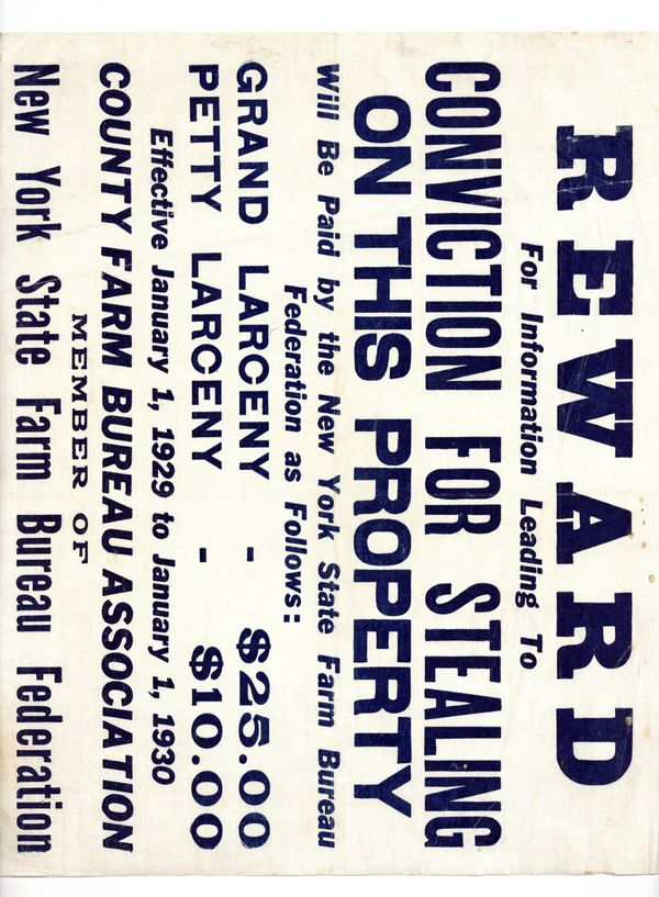 Farm Bureau Association Reward Sign (1929 New York State Farm Bureau Federation)Farm Bureau Association Reward Sign (1929 New York State Farm Bureau Federation)
