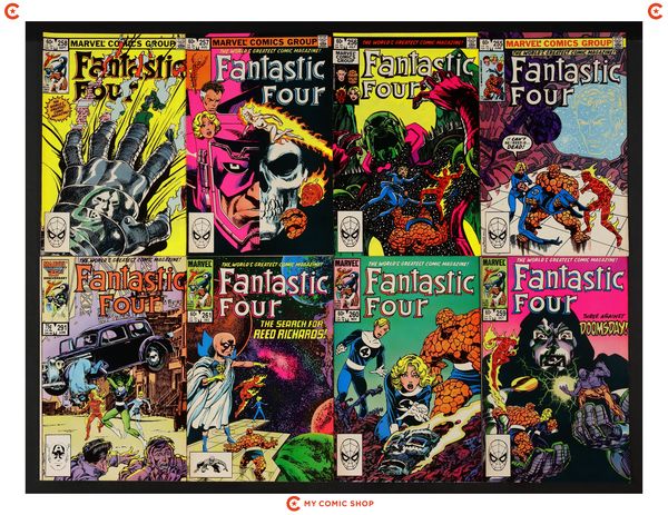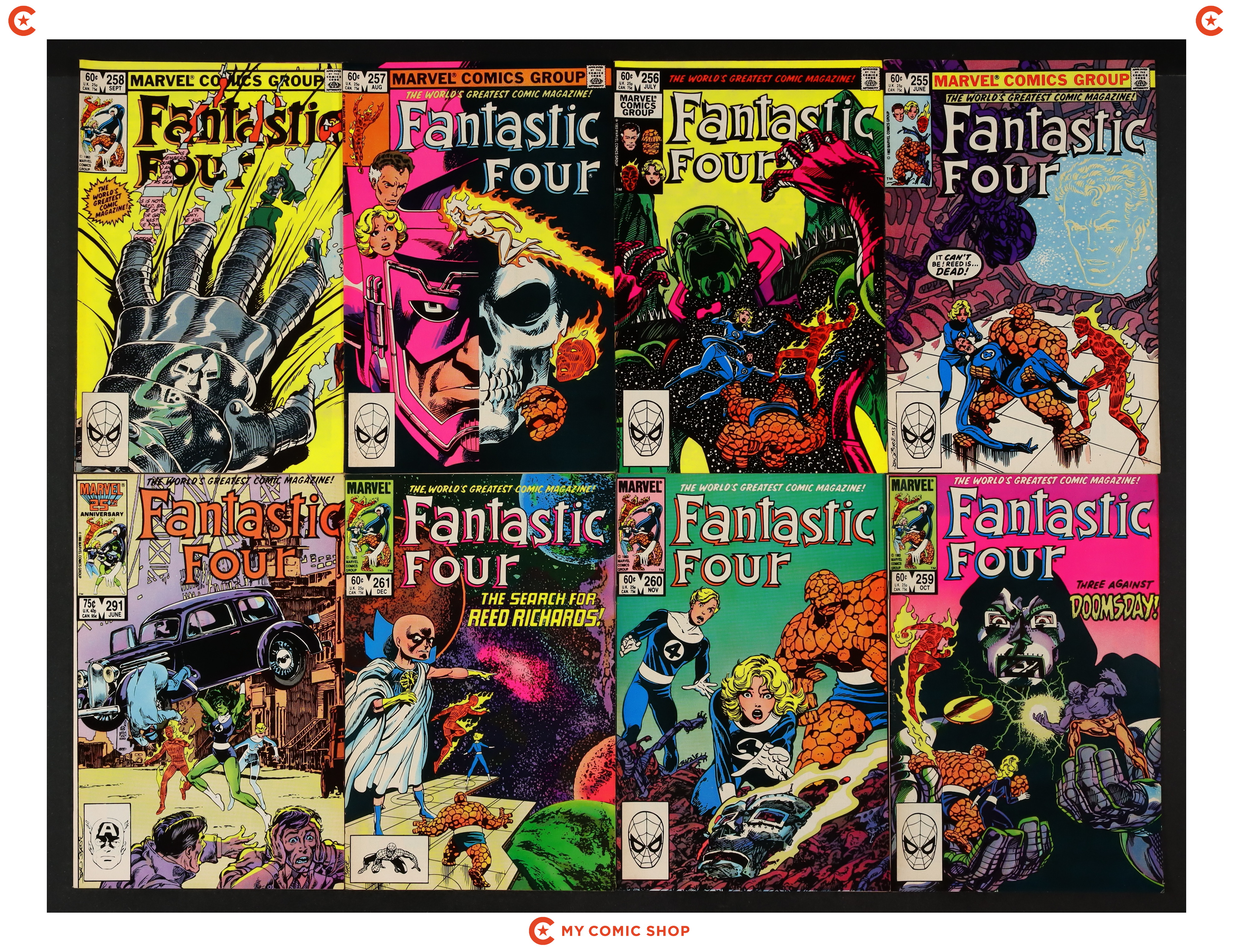 Issues 255, 256, 257D, 258, 259, 260D, 261D, and 291 of Fantastic Four (1961 1st Series). Most will grade in the FN to VF range.