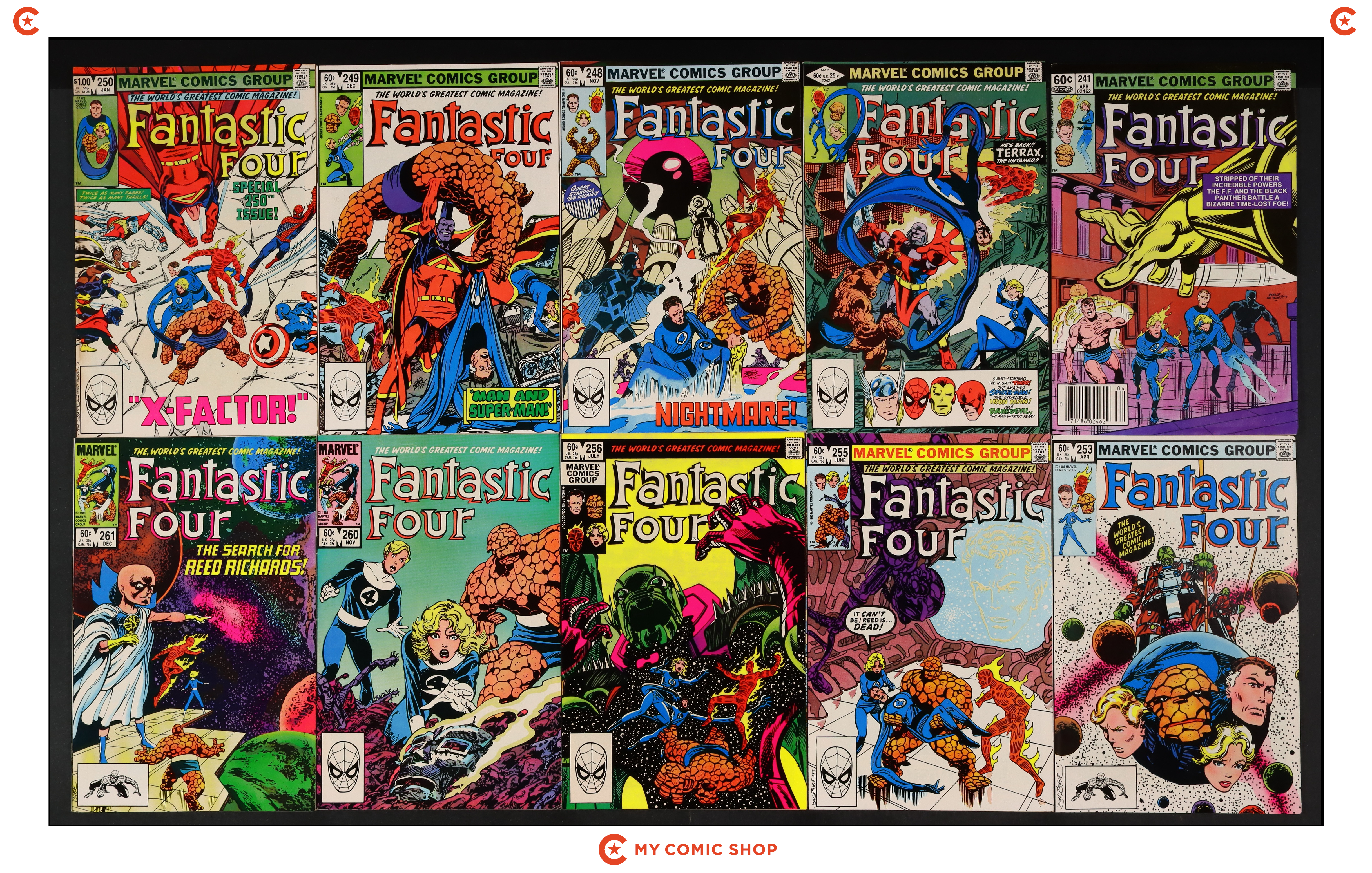 Issues 241N, 242, 248, 249D, 250, 253, 255, 256, 260D, 261D of Fantastic Four (1961 1st Series). Most will grade in the VG/FN to VF- range.