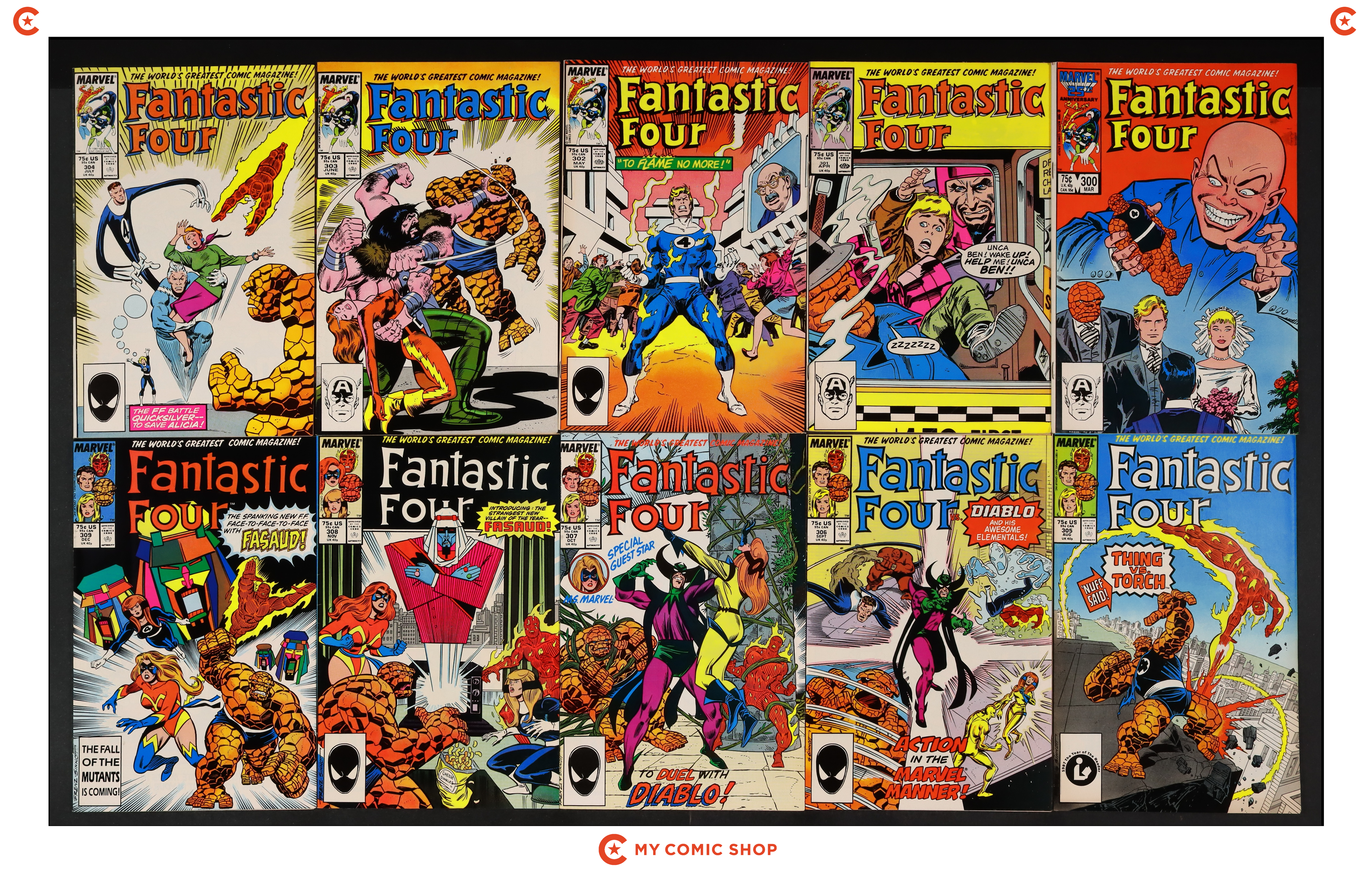 Issues 300-305, 306D, 307D, 308, 309, 310 of Fantastic Four (1961 1st Series). Most will grade in the VG/FN to VF range.