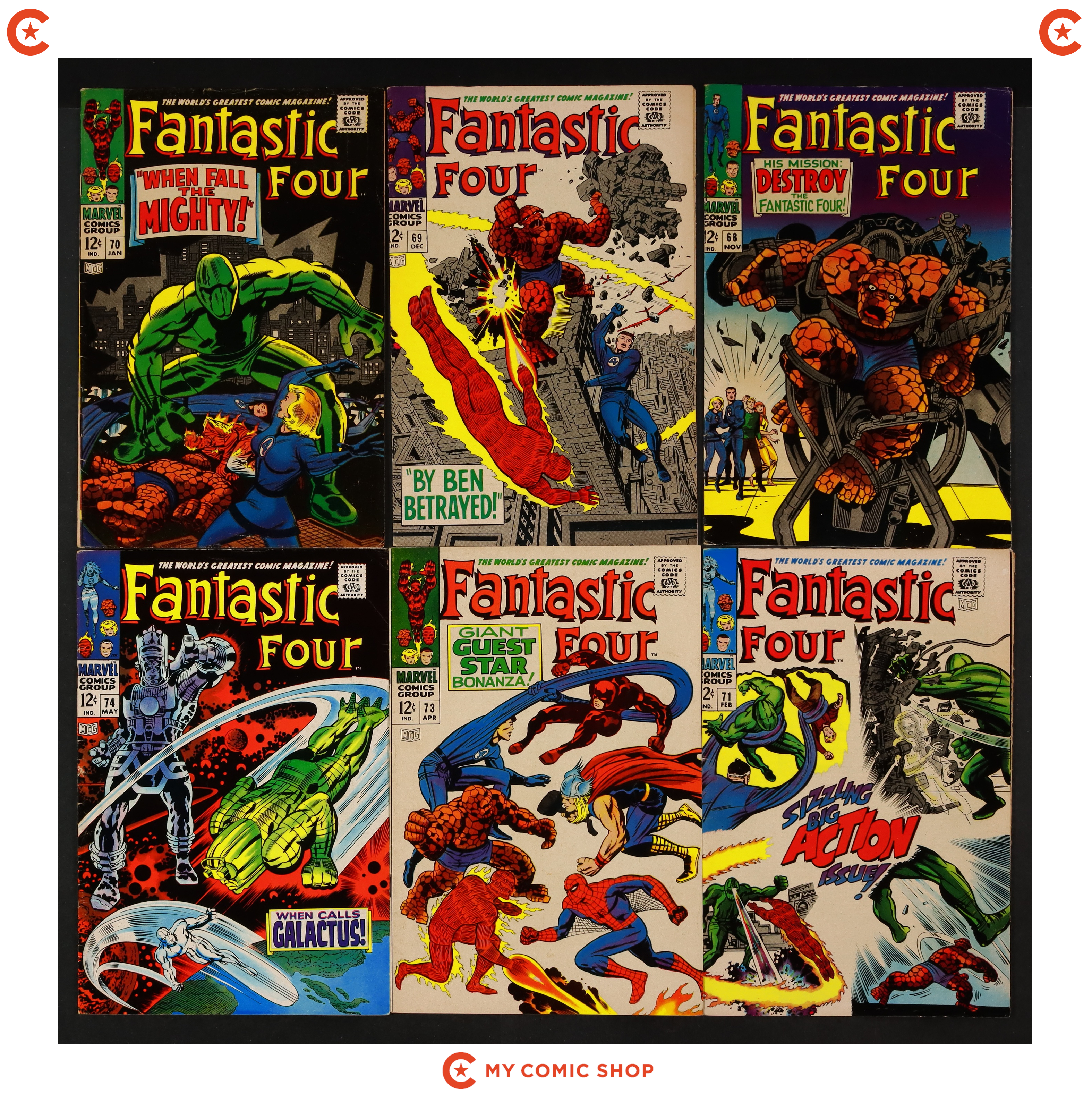 Issues 68-71, 73, 74 of Fantastic Four (1961 1st Series). Most will grade in the VG to FN range.
