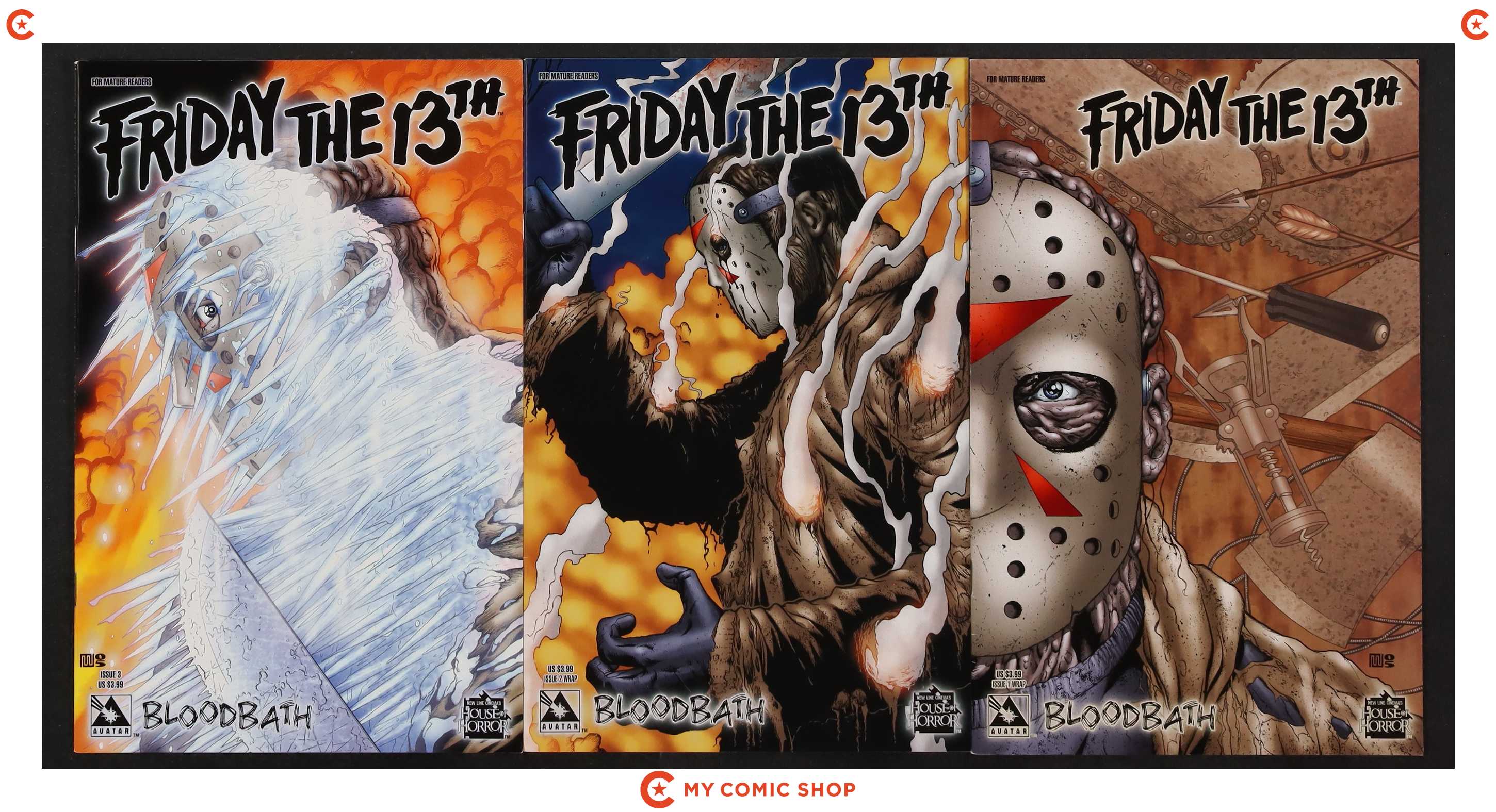 Issues 1B, 2A, 3A of Friday the 13th Bloodbath (2005 Avatar). Most will grade in the VF range.