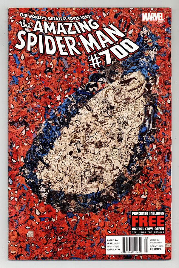Starts Apr 20 Direct Edition. Dying Wish: Part 2 of 2. Written by Dan Slott, J.M. DeMatteis and Jen Van Meter. Art by Humberto Ramos, Giuseppe Camuncoli, Stephanie Buscema, Victor Olazaba and Sal Buscema. Cover by Mr Garcin. Marvel Comics proudly presents the end of a 700 issue era! Featuring "Dying Wish: Suicide Run" by Dan Slott, Humberto Ramos and Victor Olazaba. Plus these extra amazing, spectacular and sensational stories: "Spider-Dreams" by J.M. DeMatteis, Giuseppe Camuncoli and Sal Buscema, and "Date Night: A Black Cat Storybook Adventure!" by Jen Van Meter and Stephanie Buscema. Also: cover gallery featuring all 700 Amazing Spider-Man covers; special previews of the all-new Spidey books; and the final Amazing Spider-Mail featuring Stan "The Man" Lee answering your questions! 104 pages, full color. Rated T+ Cover price $7.99.
