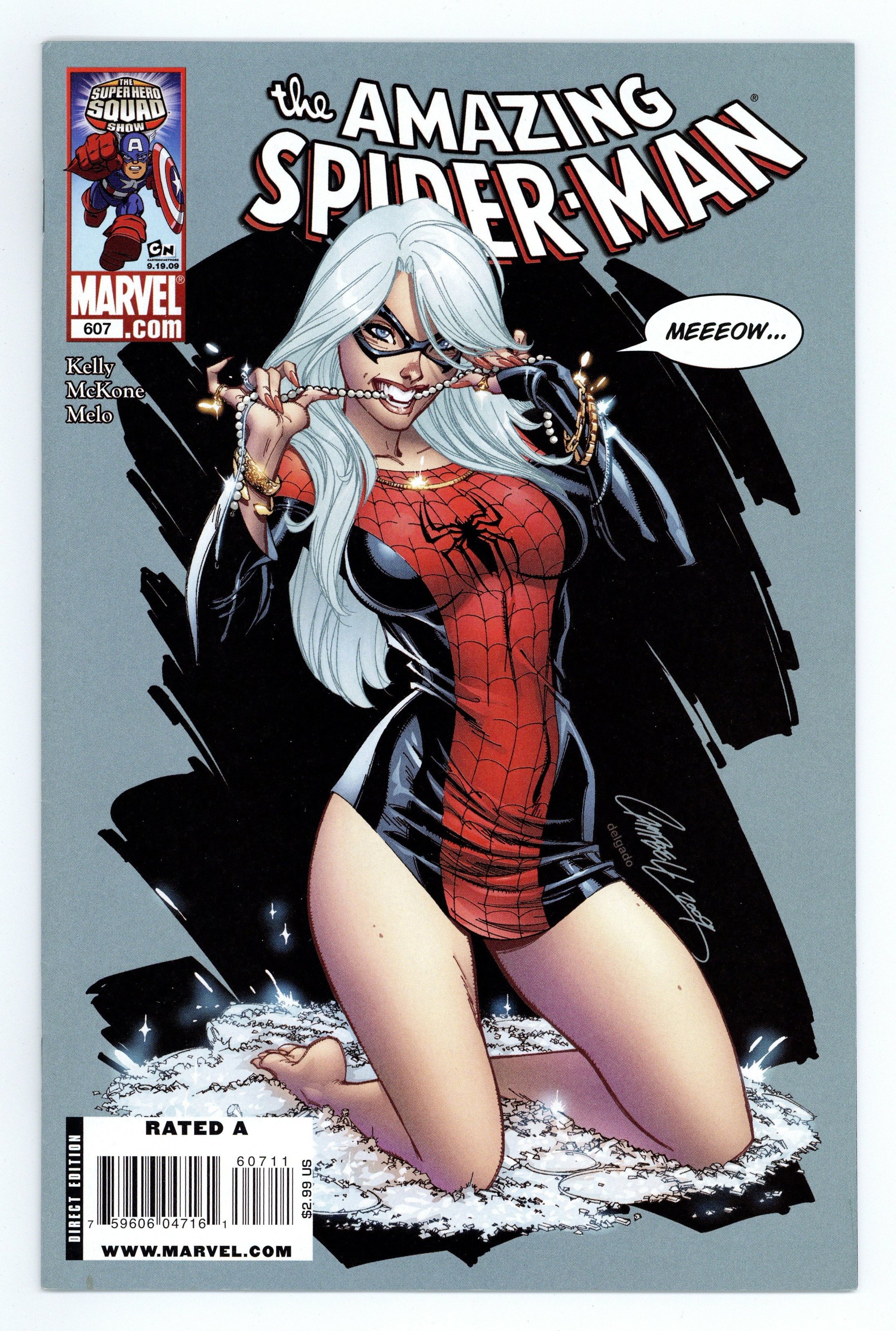 Starts Mar 23 "Long Term Arrangement" Part 1 of 2 - Written by Joe Kelly. Pencils by Mike McKone. Inks by Andy Lanning. Covers by J. Scott Campbell. Look out, Spidey! Hot on the heels of his old girlfriend's trip home, The Black Cat's back (and front!), sexier and more dangerous than ever! The deck is stacked as the one woman that loves Spider-Man more than Peter Parker is up to some devilish shenanigans...and nothing bugs Spidey more than shenanigans! Brace yourself for danger, Spidey! It's gonna be ...umm...sexy? 36 pgs. Cover price $2.99.