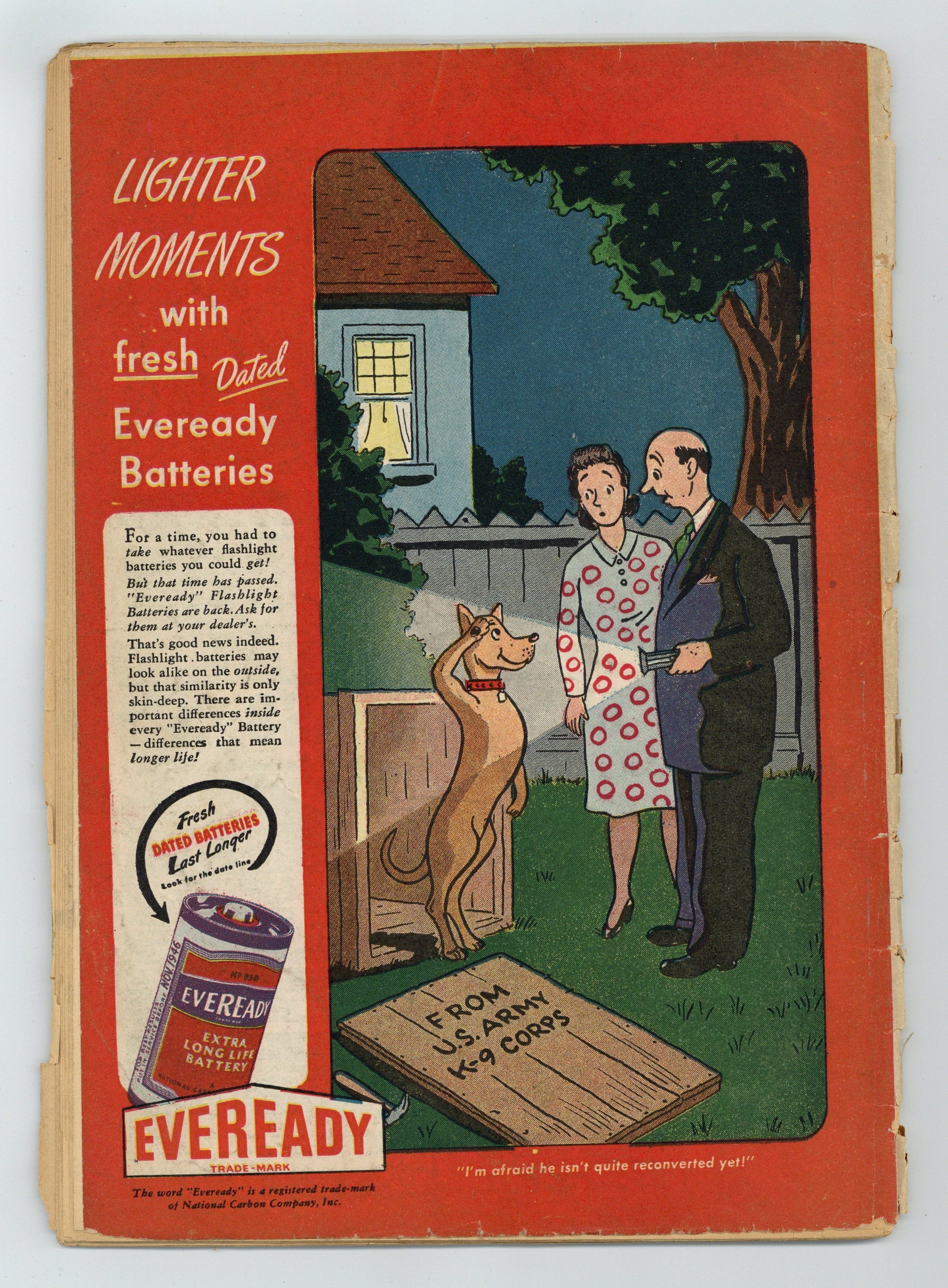 Starts Apr 20 "The Maltese Cross" (script by Richard Hughes as "Shane O'Shea"; art by Jack Sparling); "The Wanderers" (script possibly by Hughes as "Charles Lacoste"; art by Leo Morey); "Egyptian Destiny"; and "Below the Surface" (script by Hughes as "Ace Aquila"; art by Tom Hickey). Whitney cover. Cover price $0.10.