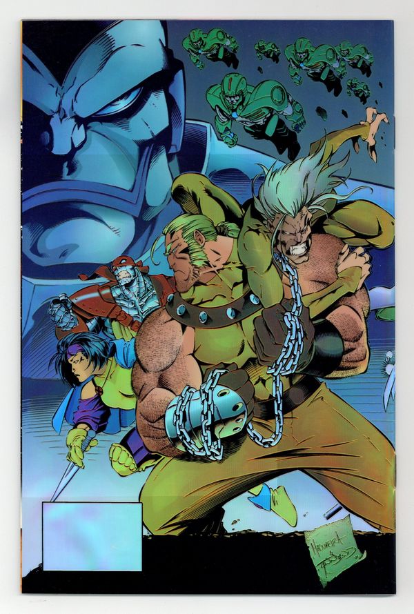 Starts Apr 27 Direct Edition. Colossus/Gambit/Psylocke/Rogue cover. Cover pencils by Jim Lee (signed), inks by Scott Williams. Rubicon, script by Jim Lee (Co-Plot) and Chris Claremont, pencils by Jim Lee, inks by Scott Williams; Magneto forms the Acolytes and proclaims Asteroid M a haven for mutants everywhere; But the rest of the world doesn't see it that way; Nick Fury cameo. 2-page pin-up: gallery of X-Men villains. X-Men Sketchbook by Jim Lee. Cover price $1.50. NOTE: Cover B connects to covers 1A, 1C, and 1D to form a single giant image. Cover price $1.50.