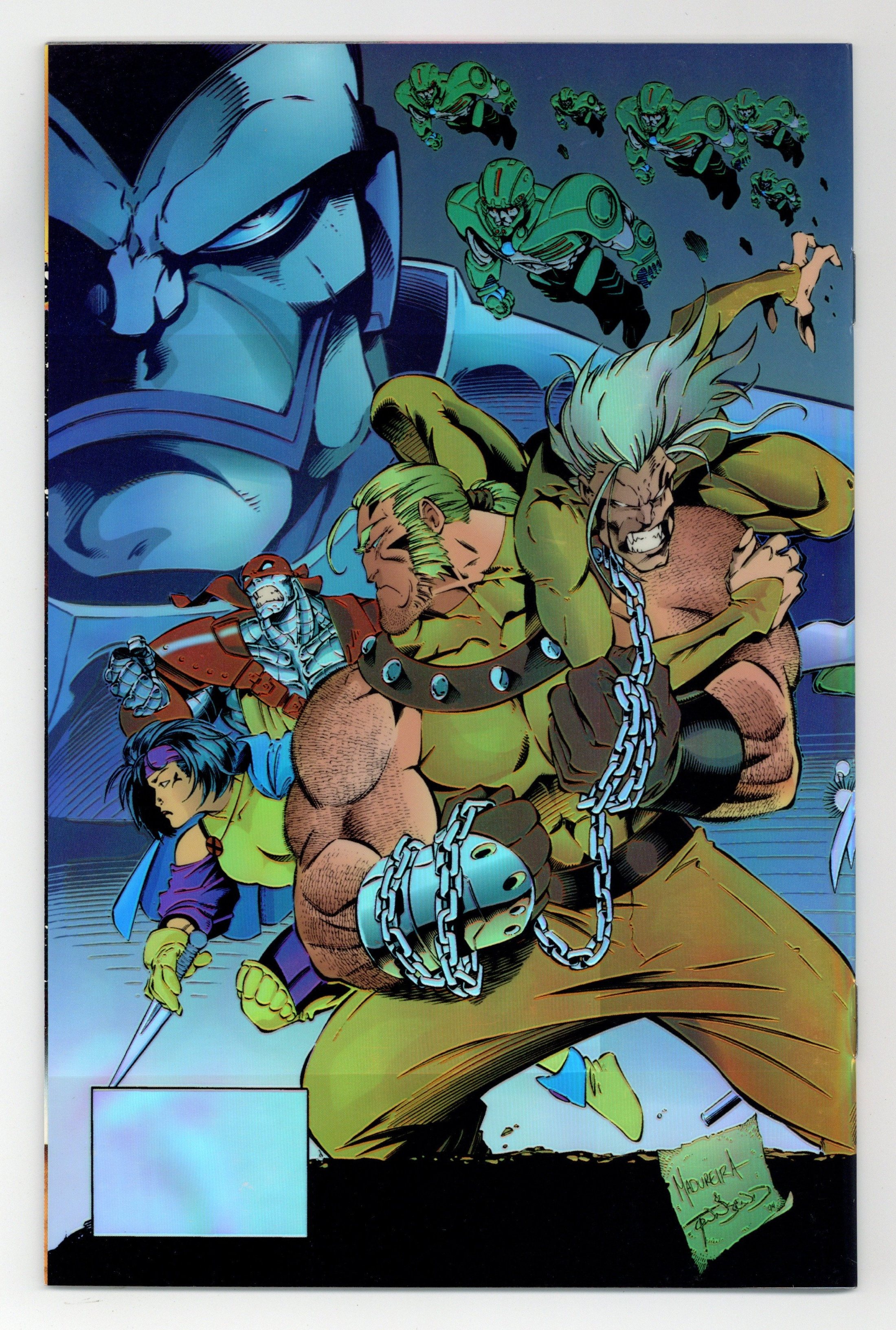 Starts May 18 1st appearance of X-Man. 1st appearance of Dark Beast. "Age of Apocalypse storyline". This is the Gold Edition. Holochromium wraparound cover. Blink and Morph appear. Scott Lobdell and Mark Waid story. Roger Cruz, Steve Epting, Tim Townsend, & Dan Panosian art. Joe Madureira cover art. Notes on identifying the gold edition from the regular edition - gold edition cover displays a rainbow effect when moved around in the light. Cover price $49.95.