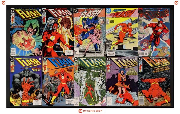 Issues 46, 47, 48, 49, 50, 53, 74, 76, 80B.N, 91, 93, 100A of Flash (1987 2nd Series). Most will grade in the VF- to NM range.