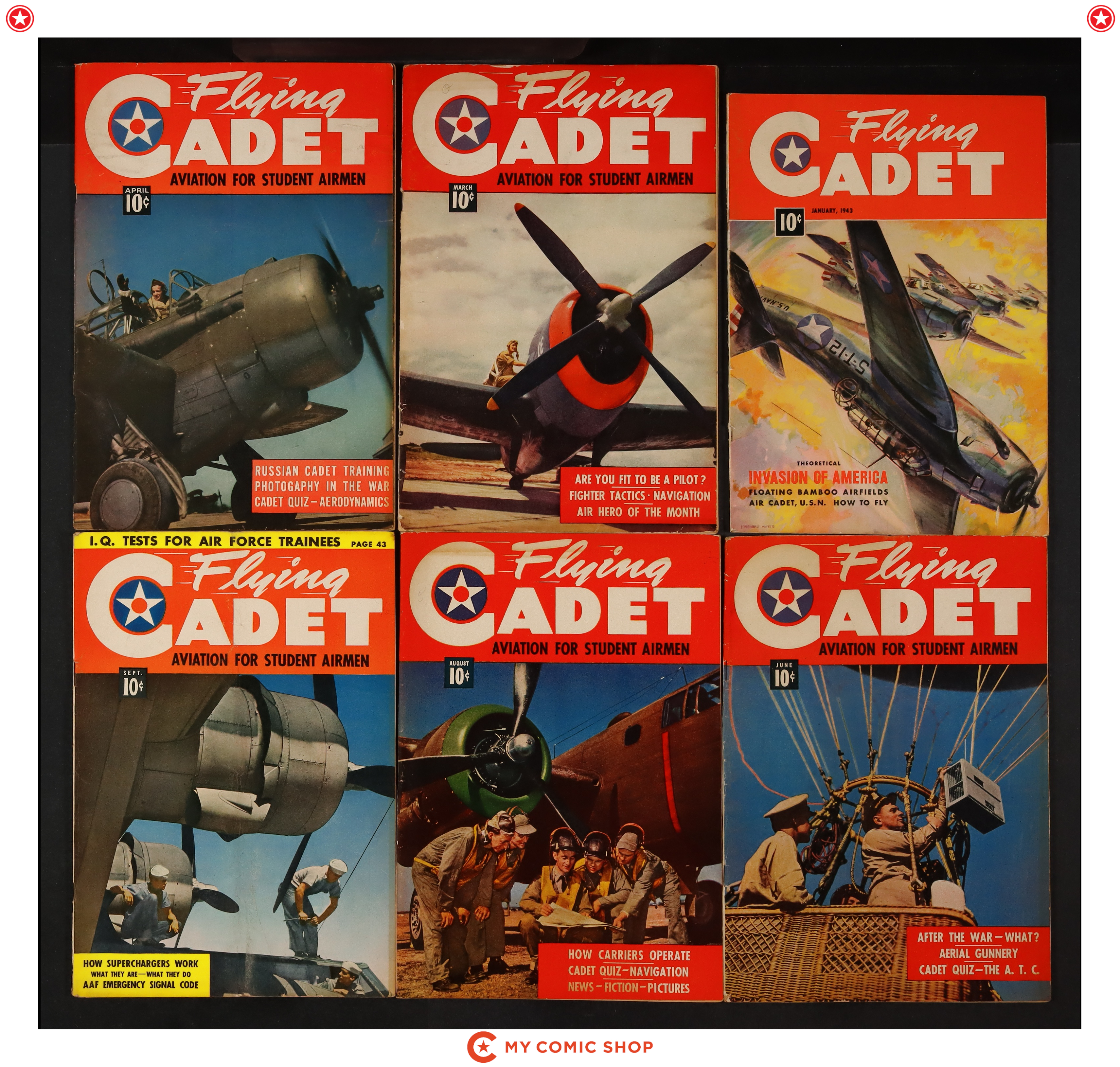 Issues Vol. 1 #1-#6 of Flying Cadet (1943 Flying Cadet Publishing Company). Most will grade in the VG range.