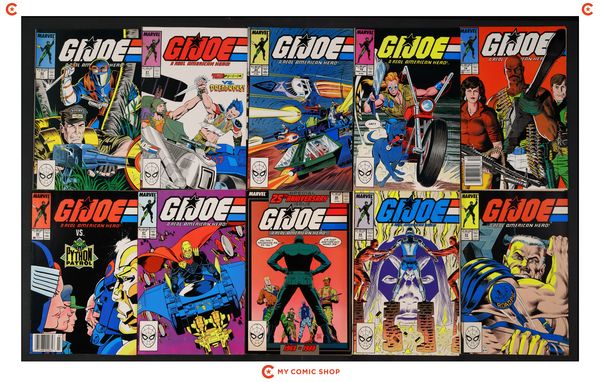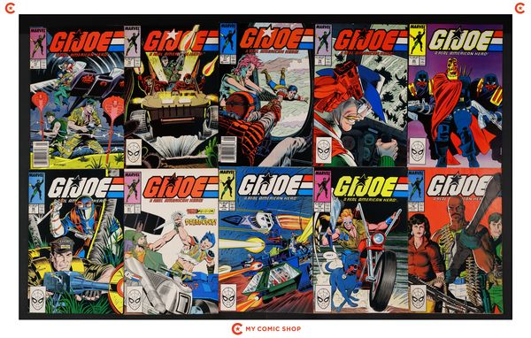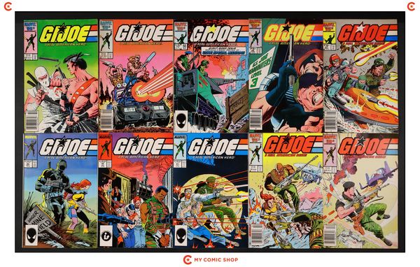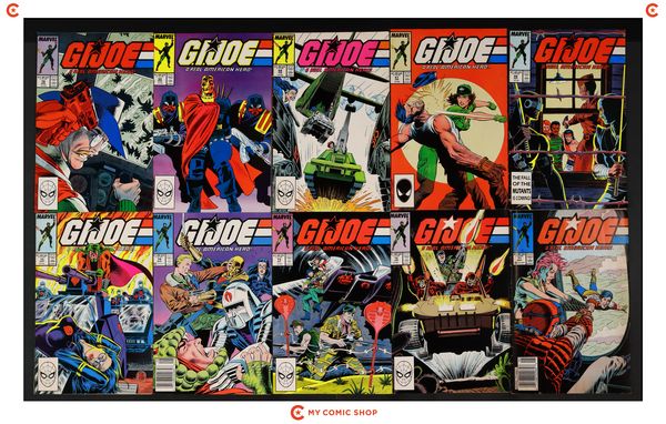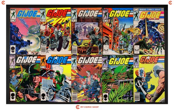 Issues 23N-25N, 28, 30, 32, 41, and 45-47 of GI Joe A Real American Hero (1982 Marvel). Most will grade in the FN to VG range.