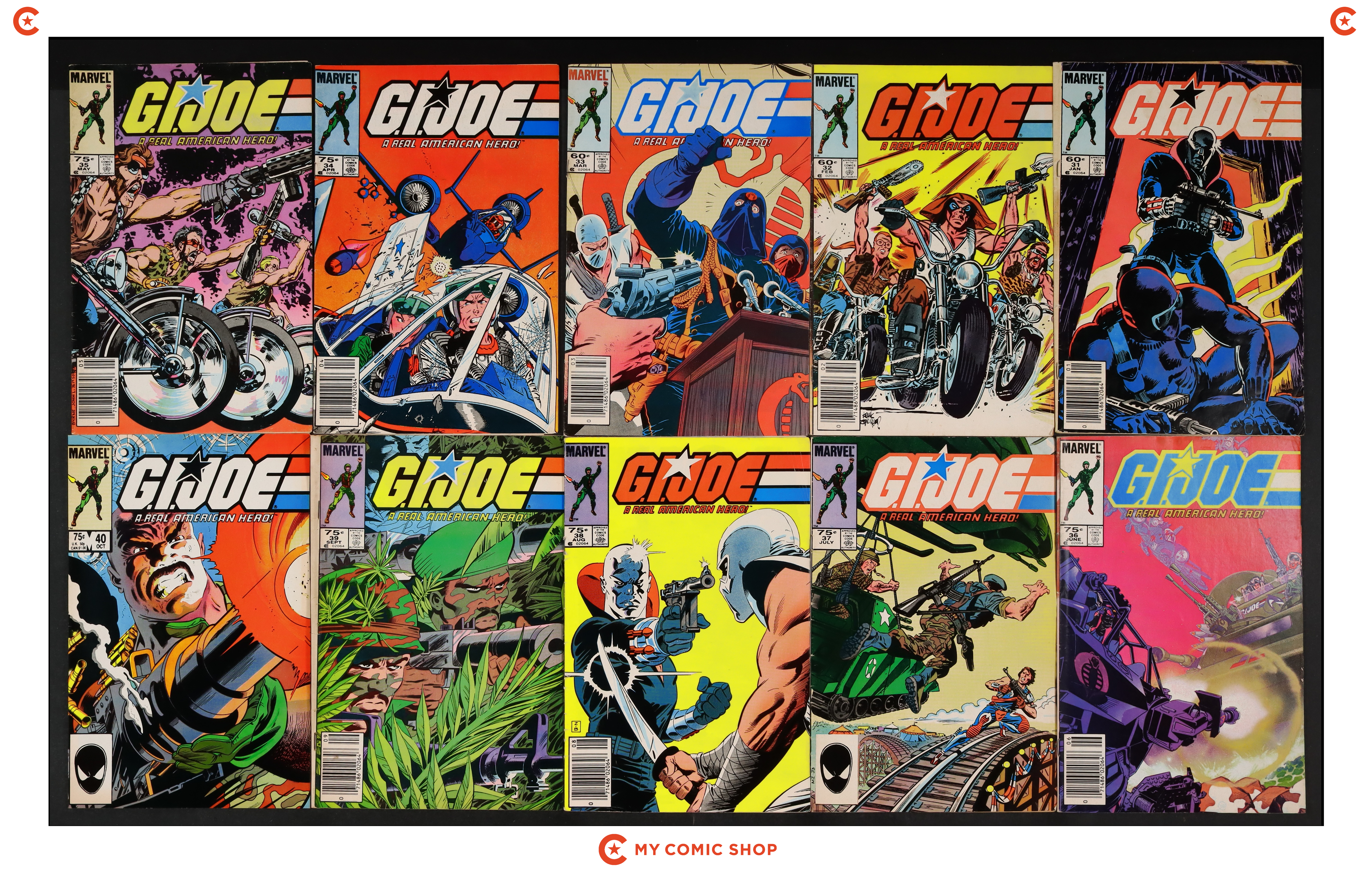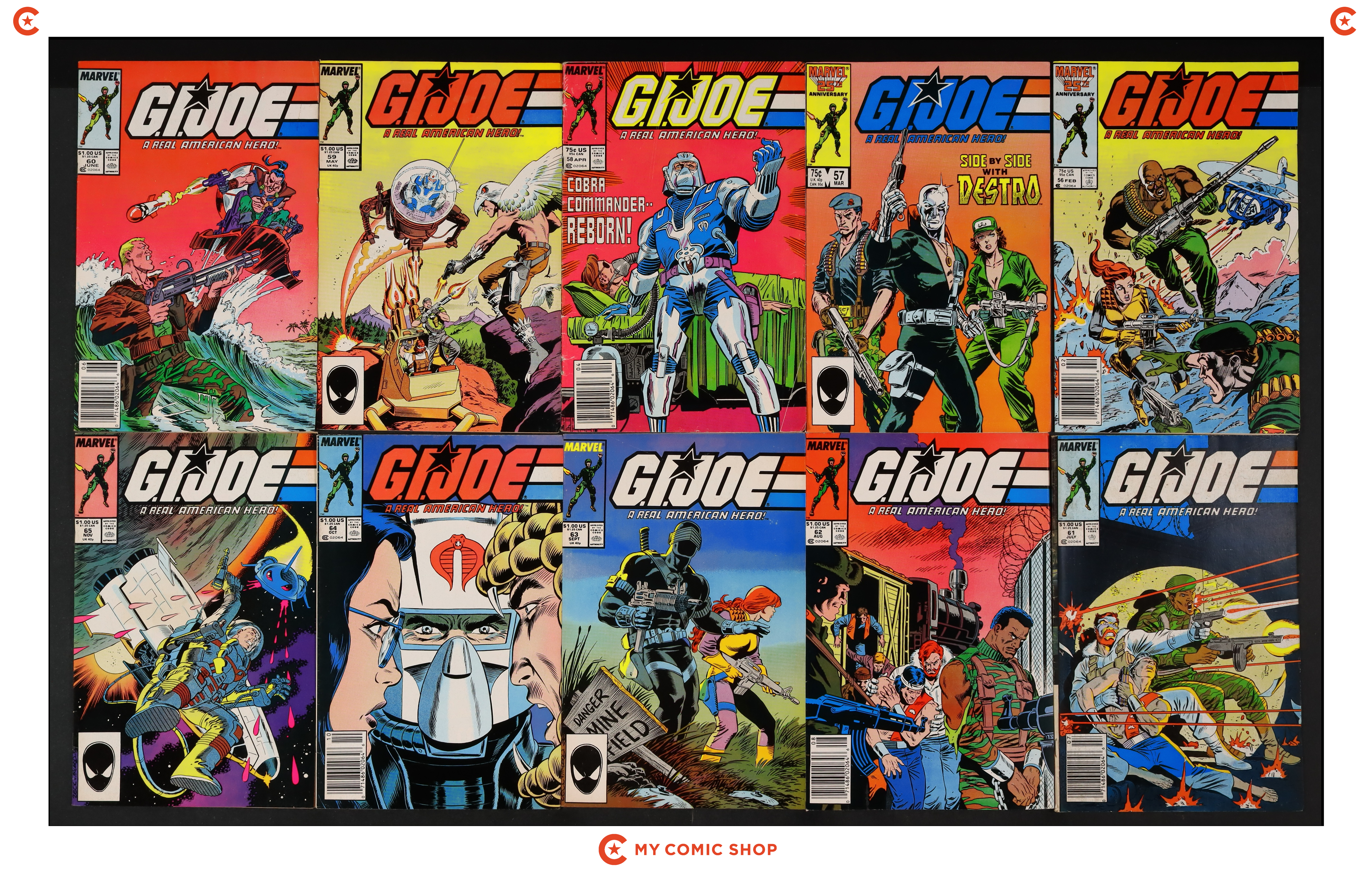 Issues 52N, 53N, 54, 55, 56D, 57, 58, 59D, 60, 61 of GI Joe A Real American Hero (1982 Marvel). Most will grade in the GD/VG to FN range.