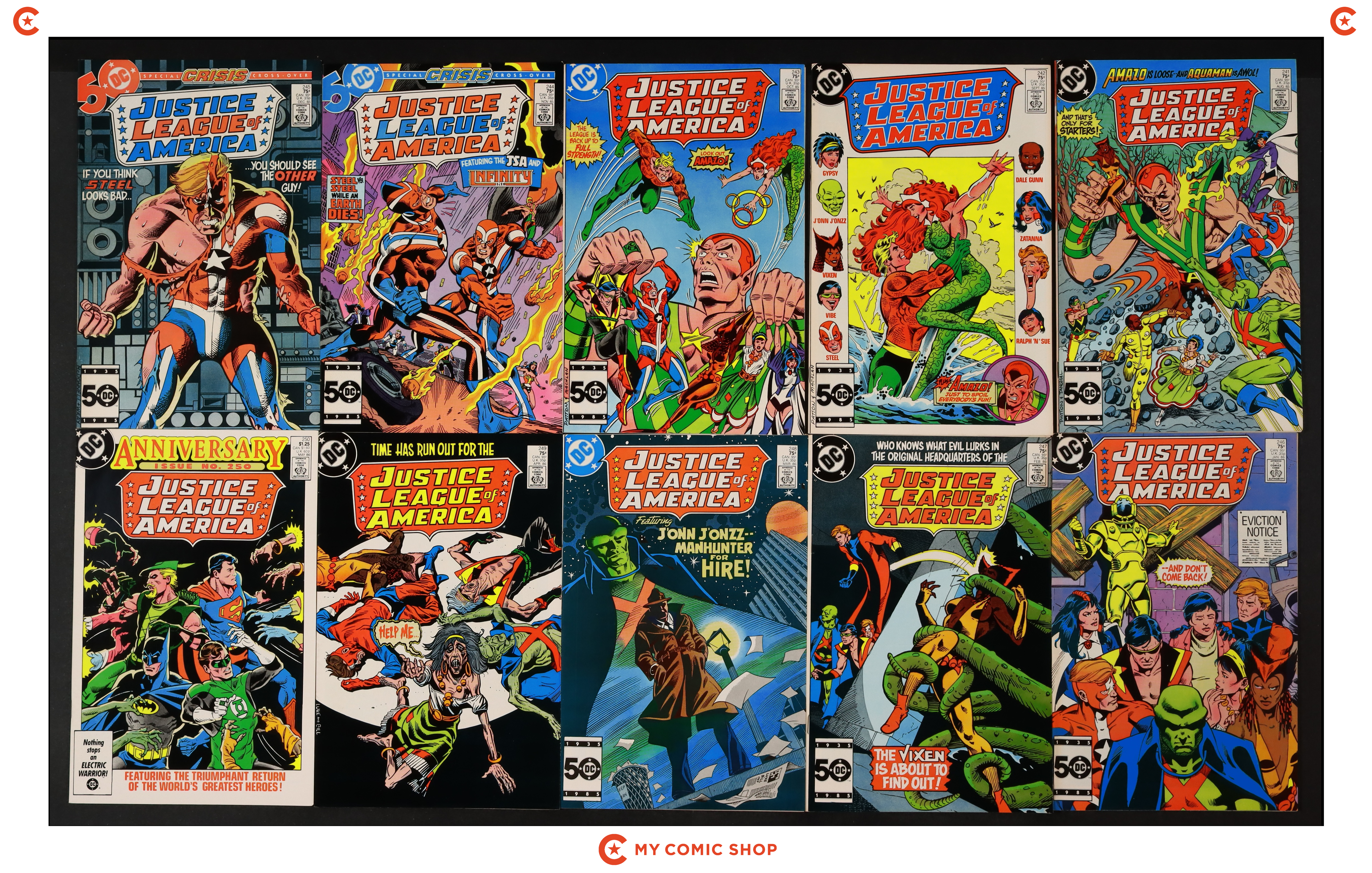 Issues 241-250 of Justice League of America (1960 1st Series). Most will grade in the VF- to FN range.