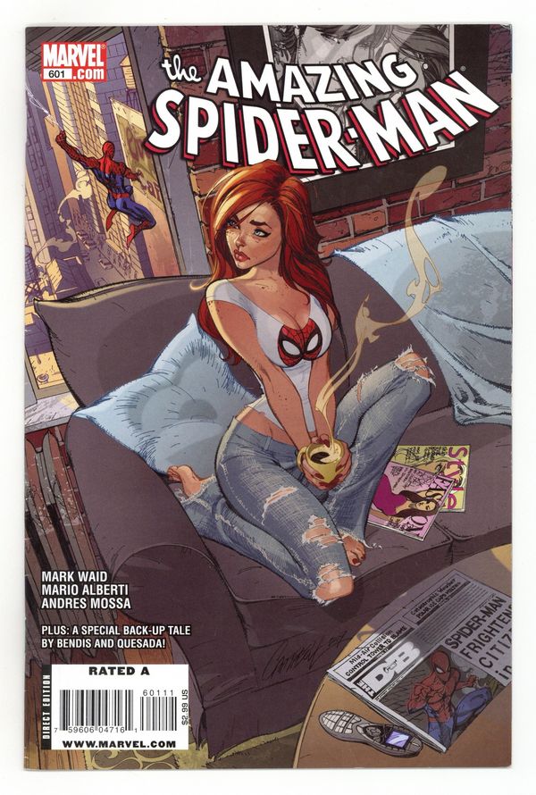 Starts Apr 4 Cover by J. SCOTT CAMPBELL. Written by MARK WAID. Art by MARIO ALBERTI. Prepare for the All-New, All-Deadly: DARK MARY-JANE!! Oops, sorry, that's the rest of Marvel's solicits...Actually, in this issue 'Red-Headed Stranger' begins just after the surprising events of AMAZING SPIDER-MAN #600 with Pete's love life taking a turn for the worse just as his old flame Mary Jane returns to New York City. (FINALLY!! Sheesh. What took us so long?!) Plus: A back-up tale by Brian Michael Bendis & Joe Quesada. 36 pgs. Cover price $2.99.