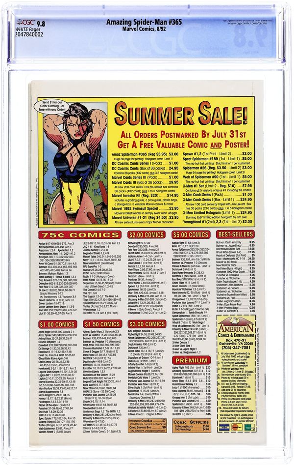 Tags: Marvel Legacy Numbering: Amazing Spider-Man (part 365), Spider-ManAmazing Spider-Man (1963 1st Series) 365 CGC 9.8