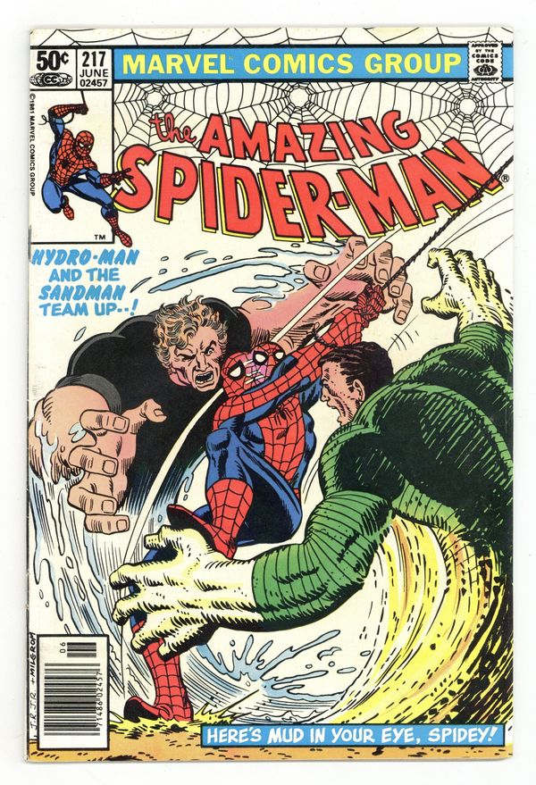 Starts Feb 23 Mark Jeweler Advertisement Insert Variant. The Sandman and Hydro-Man mix it up with Spidey in "Here's Mud in Your Eye!" Script by Denny O'Neil, pencils by John Romita Jr., inks by Jim Mooney. Cover price $0.50.