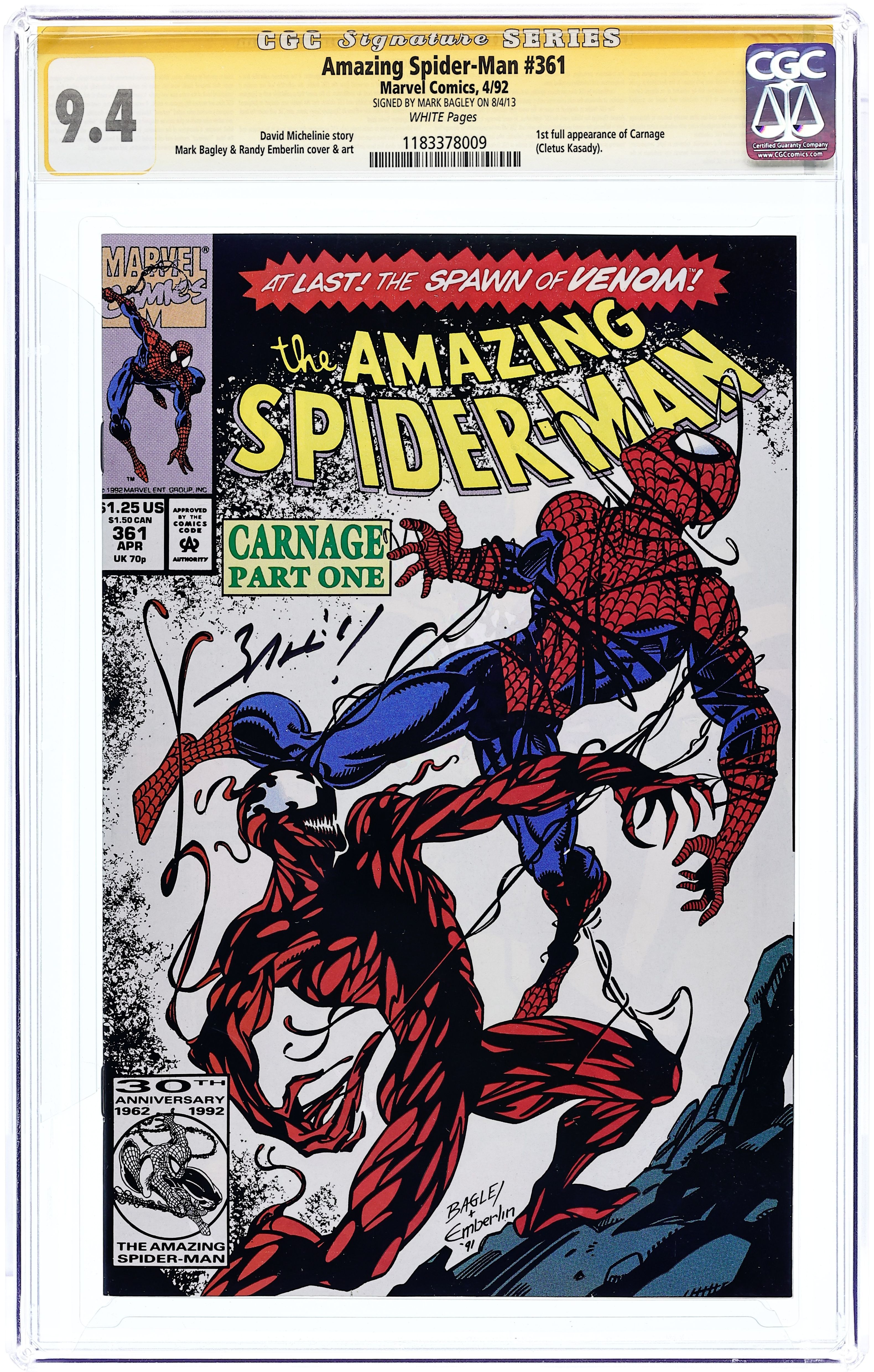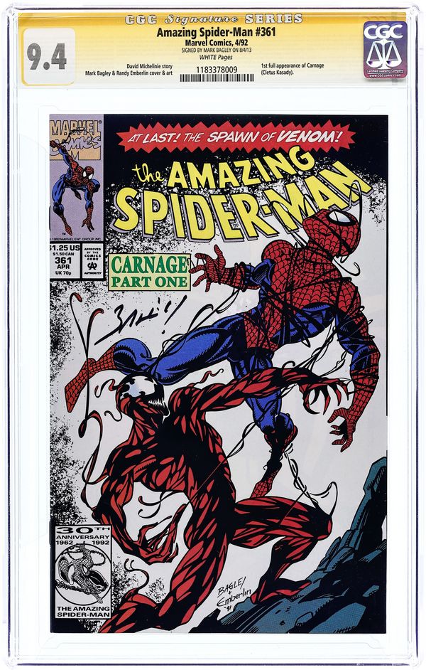 Tags: Marvel Legacy Numbering: Amazing Spider-Man (part 361), Spider-ManAmazing Spider-Man (1963 1st Series) 361A CGC 9.4 SS Bagley 1st Printing