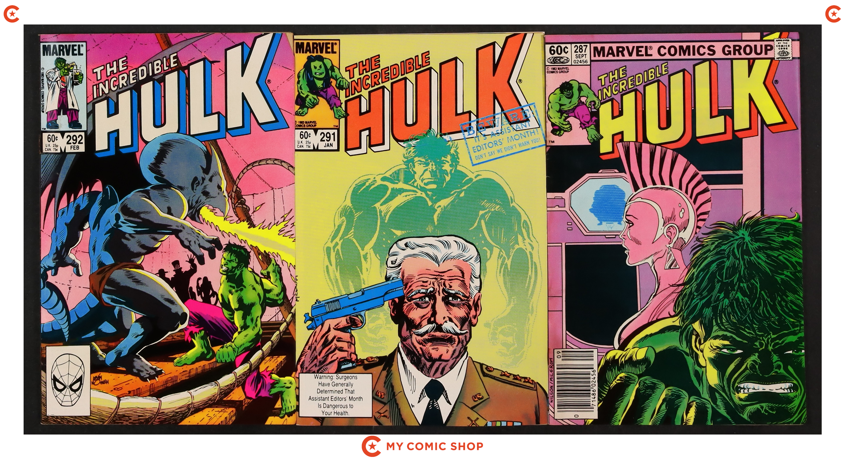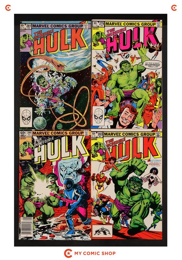 Issues 279, 281, 283, 286, 287, 291, and 292 of Incredible Hulk (1962 Marvel 1st Series). Most will grade in the FN to VG range.