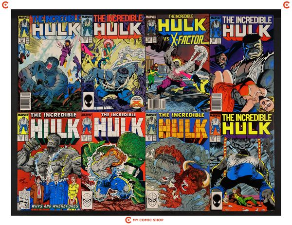 Issues 335N, 336N, 337, 338, 339, 341, 342, and 346 of Incredible Hulk (1962 Marvel 1st Series). Most will grade in the FN range with a couple grading VF.