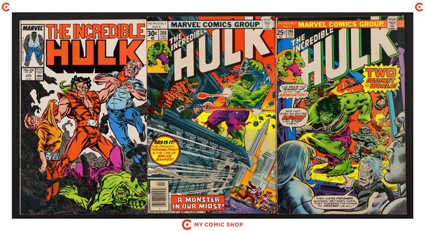 Issues 196, 208, 330D of Incredible Hulk (1962 Marvel 1st Series). Most will grade in the GD/VG to VG range.