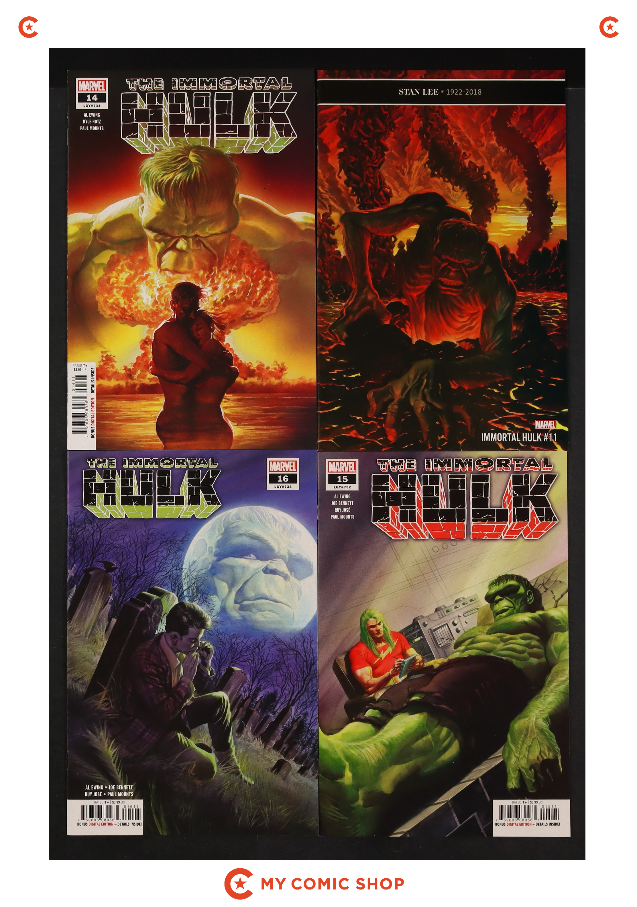Issues 1A-11A and 14A-16A of Immortal Hulk (2018 Marvel). Most will grade in the NM to VF range.