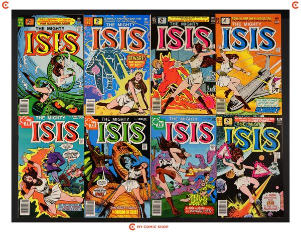 Issues 1-8 of Isis (1976). Most will grade in the FN- to VF+ range, with #8 grading at GD/VG.