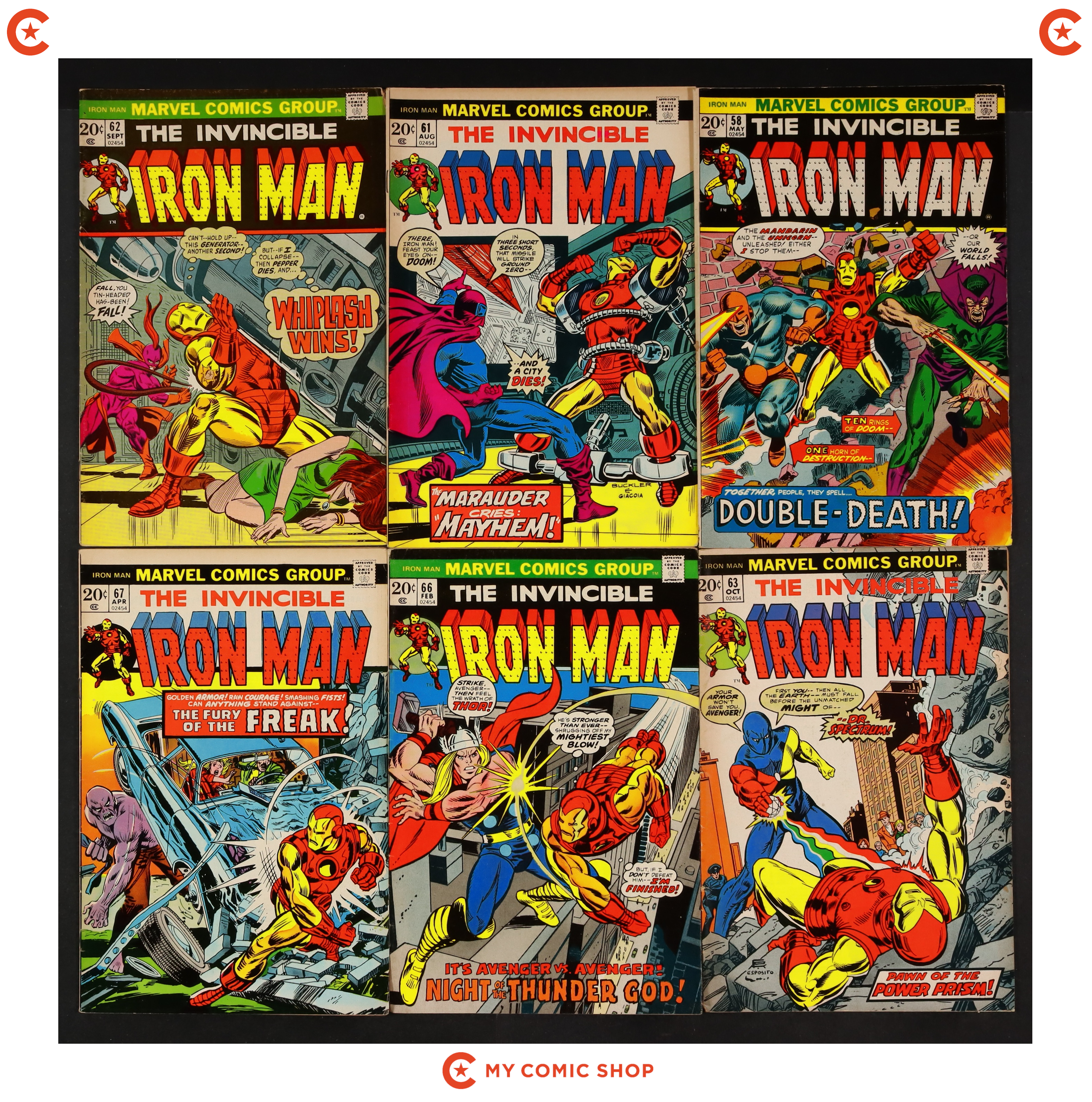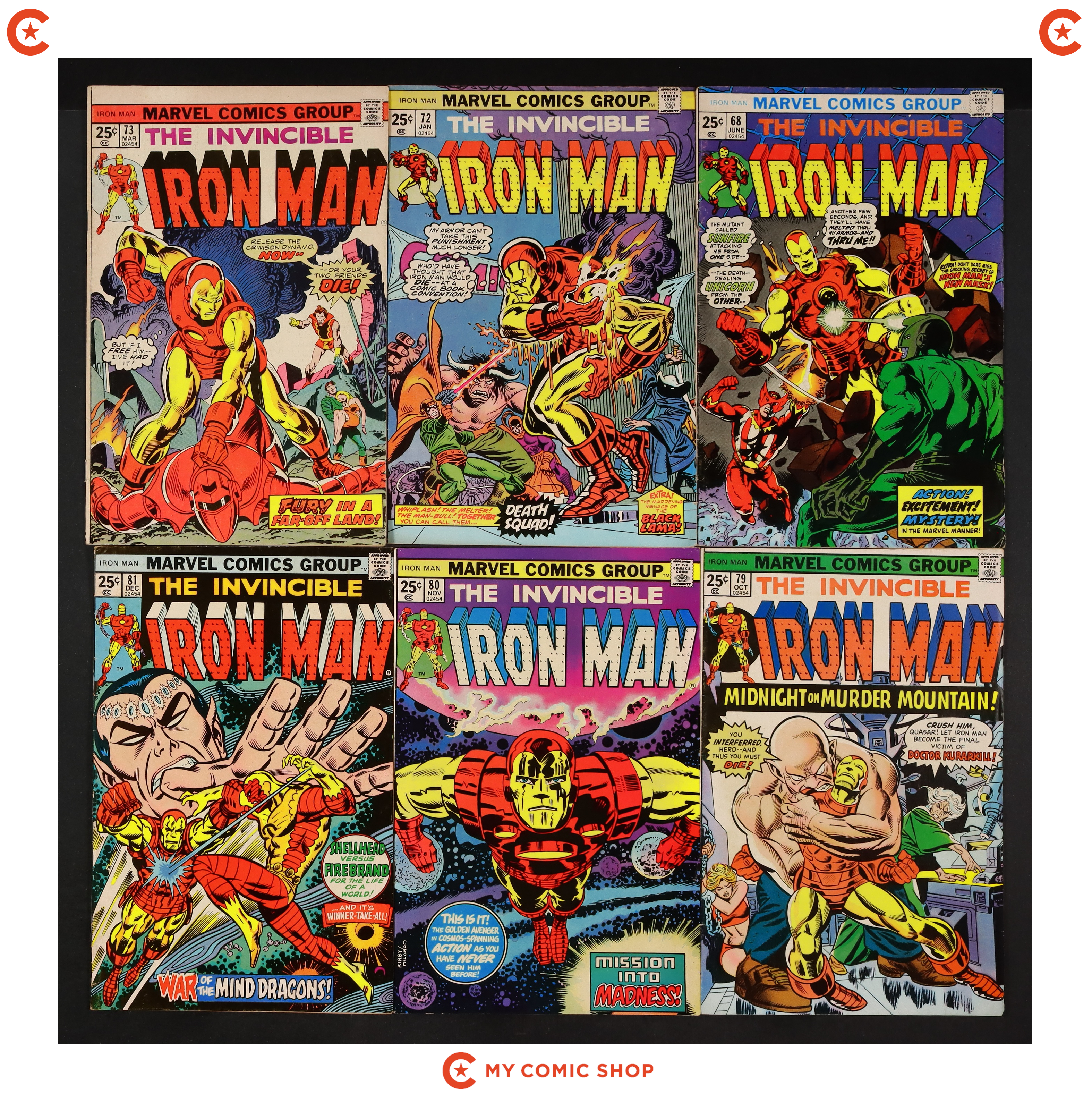 Issues 58, 61-63, 66-68, 72, 73, and 79-81 of Iron Man (1968 1st Series). Most will grade in the VG range with a couple grading FN.