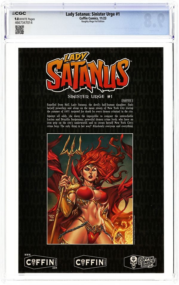 Published Nov 2023 by Coffin Comics.Lady Satanus Sinister Urge (2023 Coffin Comics) 1MEGAFOIL CGC 9.8
