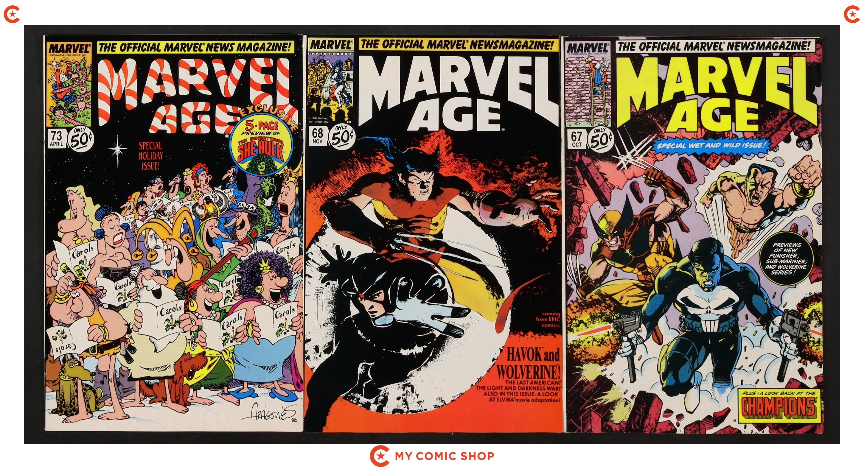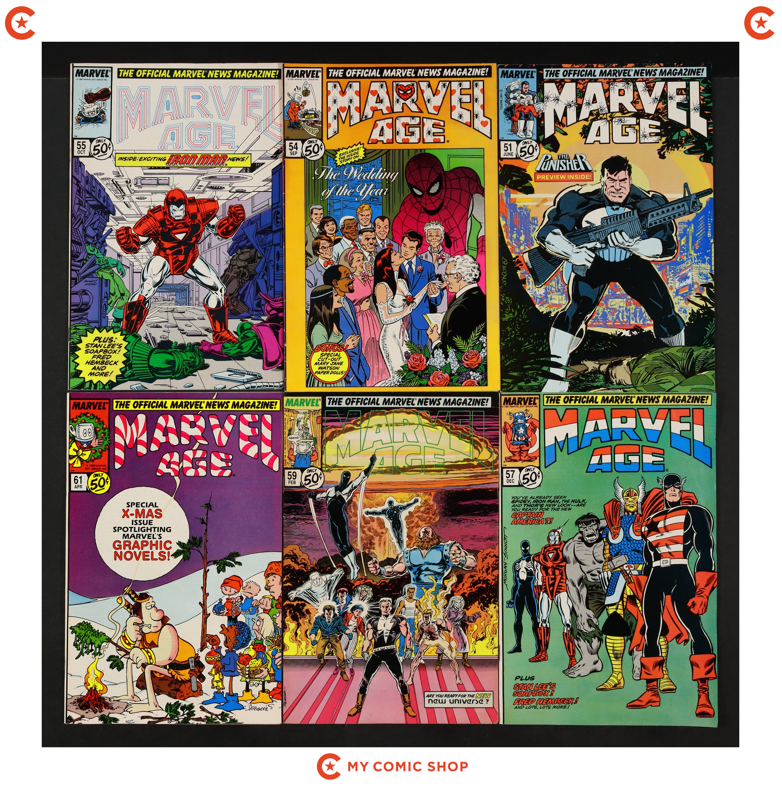 Issues 51, 54, 55, 57, 59, 61, 67, 68, and 73 of Marvel Age (1983 Marvel). Most will grade the FN range.