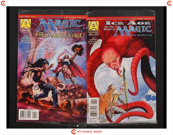 Issue 4 of Magic the Gathering The Shadow Mage (1995), and issue 4 of Magic the Gathering Ice Age (1995). Most will grade in the VF to NM range.