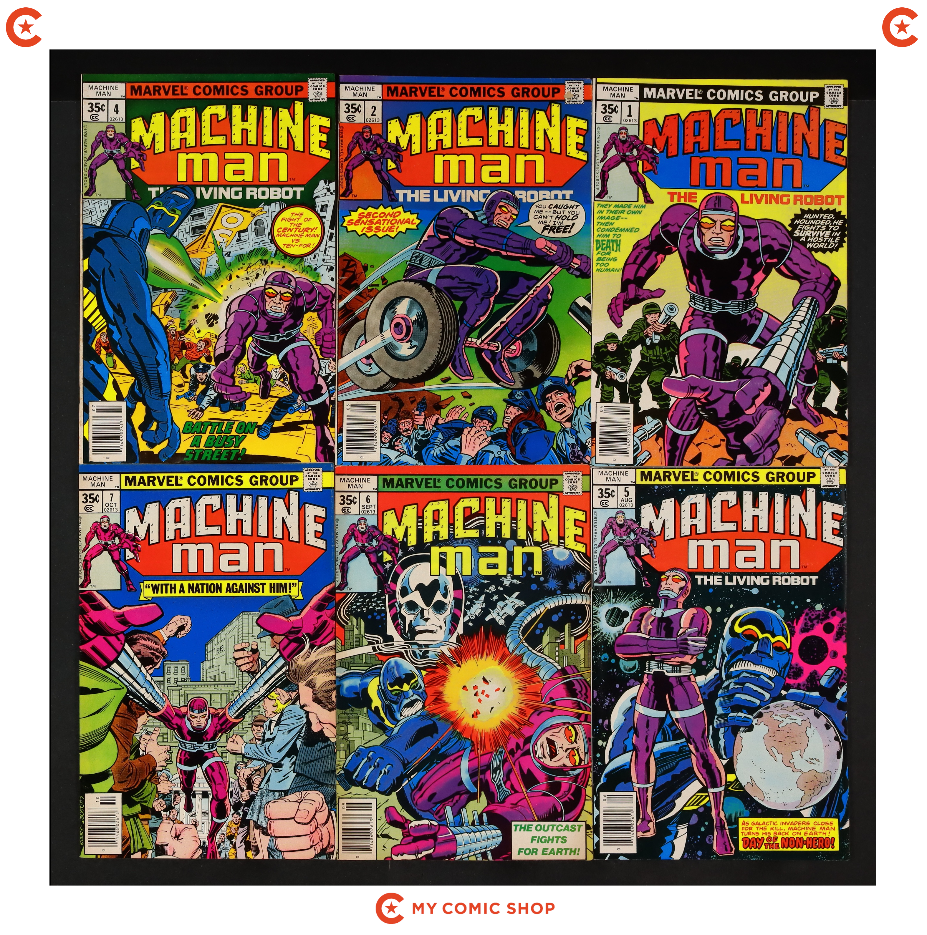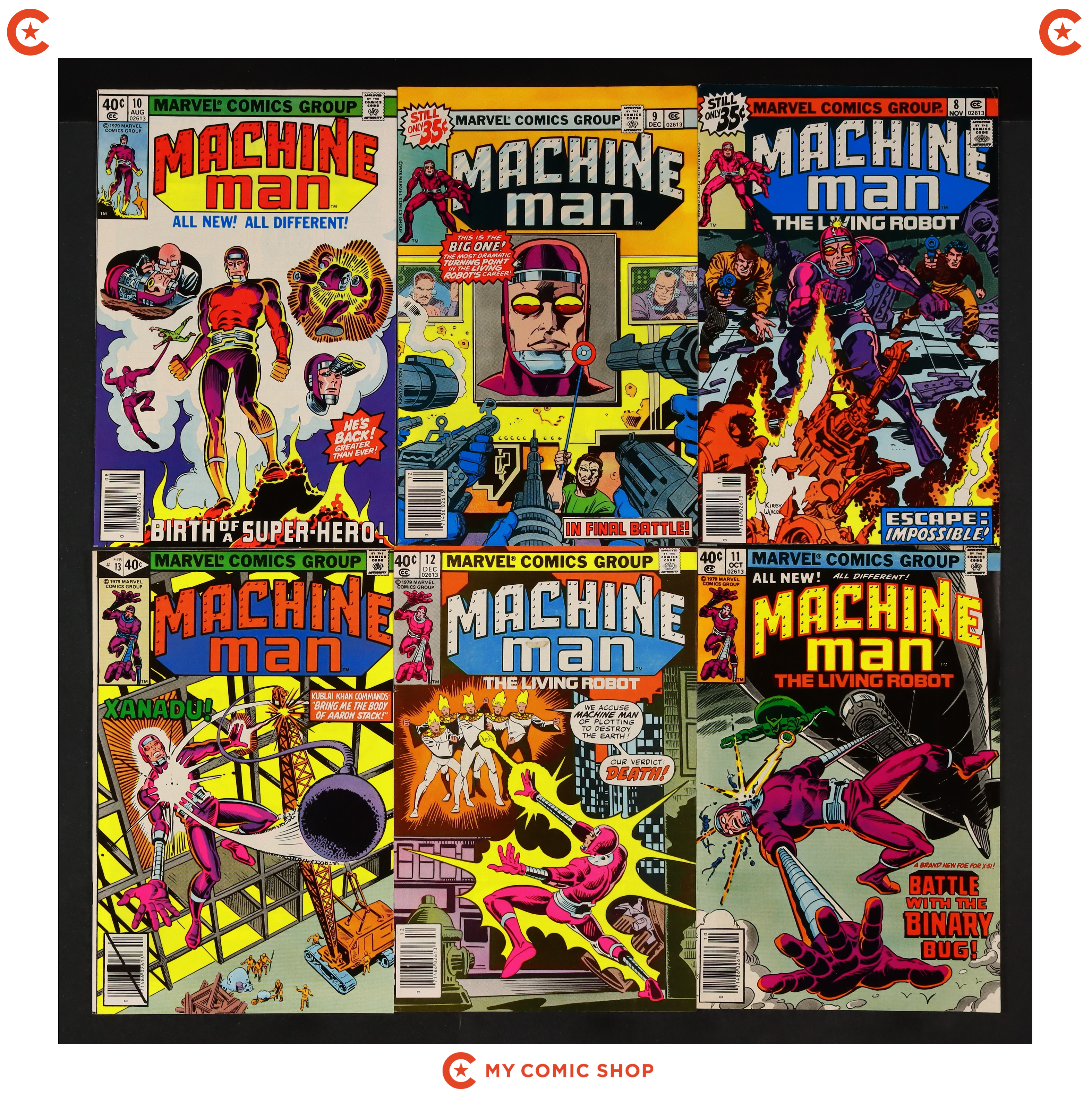 Issues 1, 6-8, 10-13 of Machine Man (1978 1st Series). Most will grade in the VG to FN range.