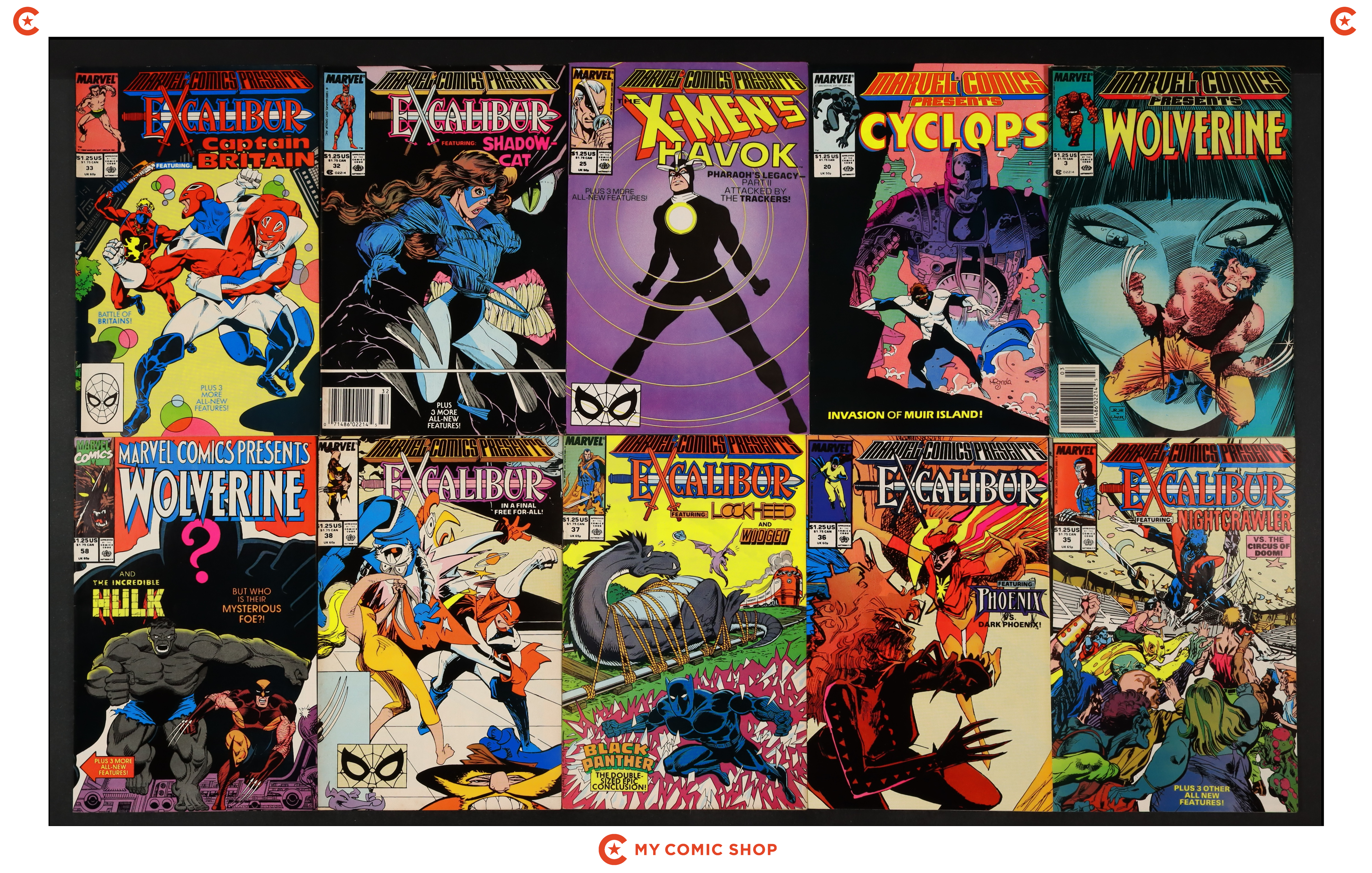 Issues 3, 20, 25, 32, 33, 35-38, and 58 of Marvel Comics Presents (1988). Most will grade in the FN range with a couple grading VG.