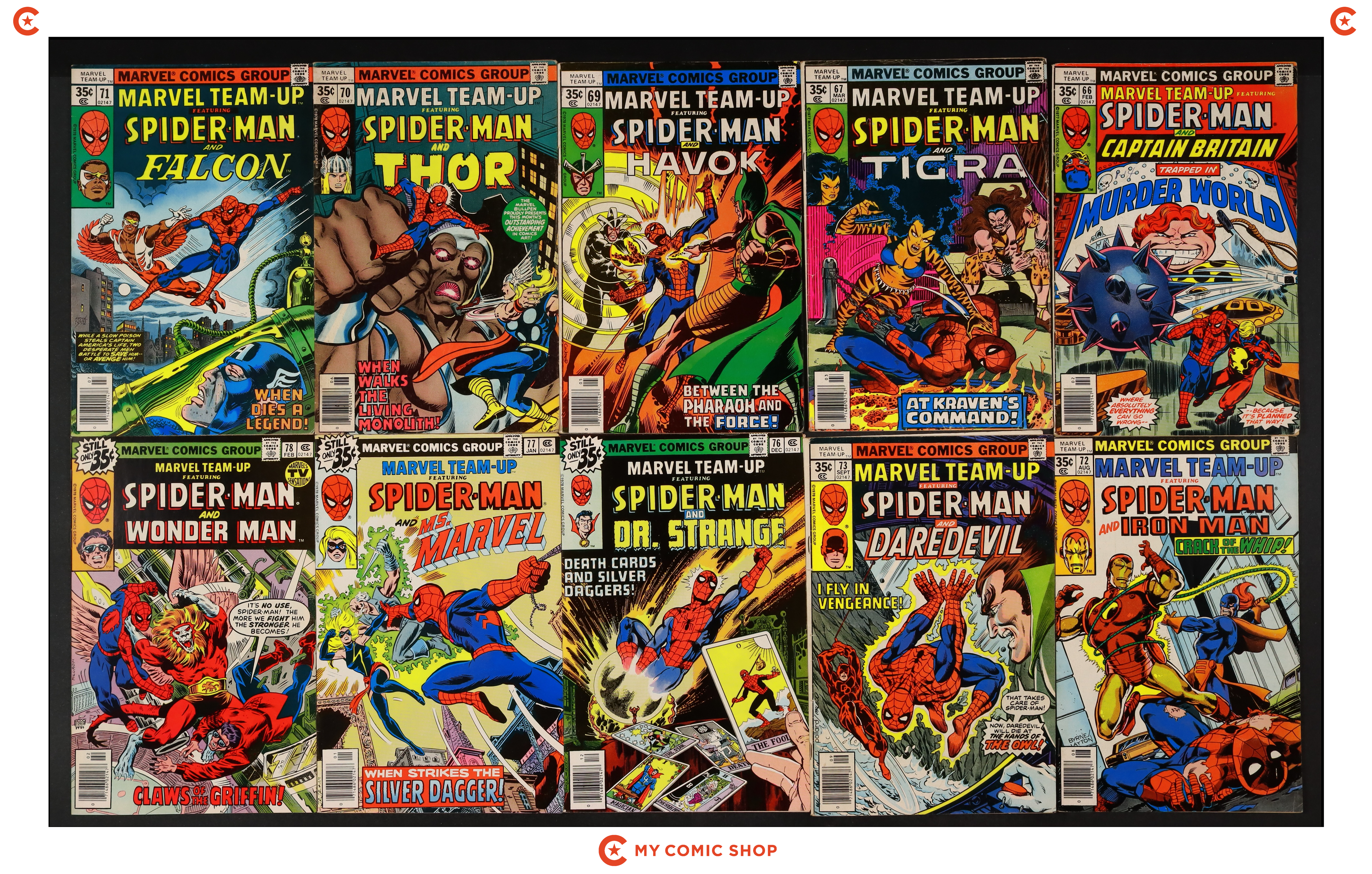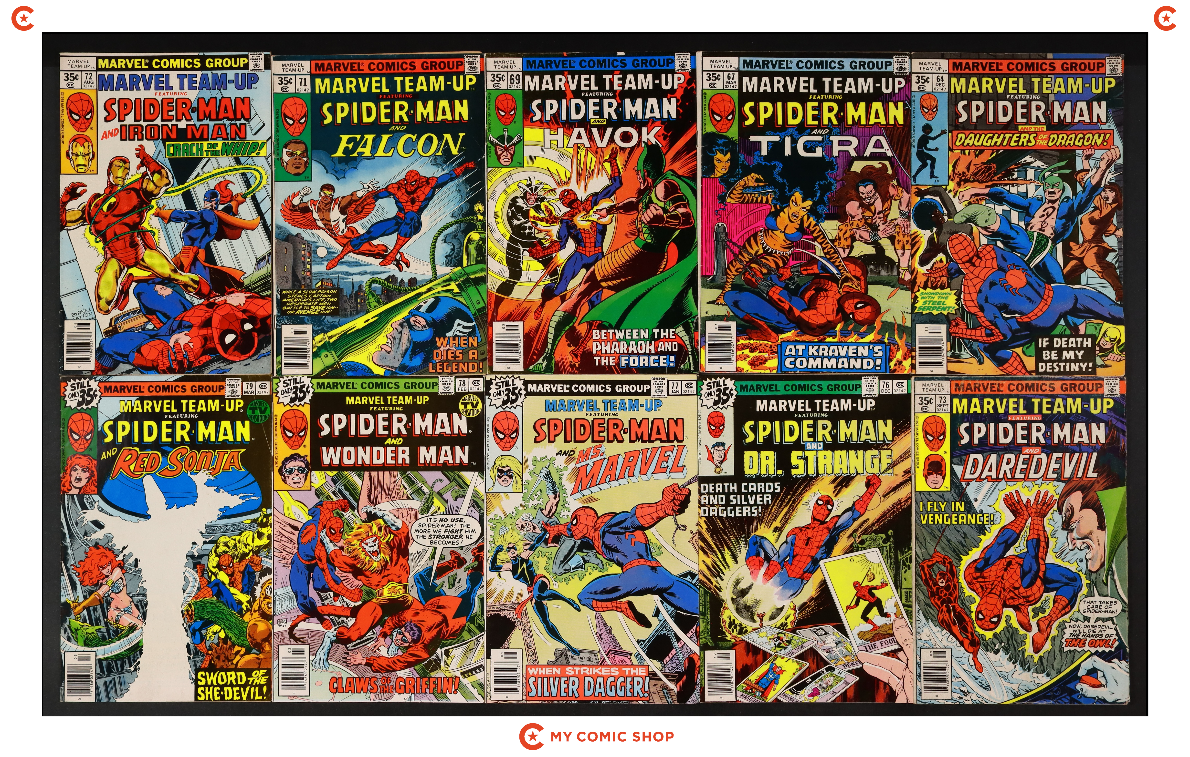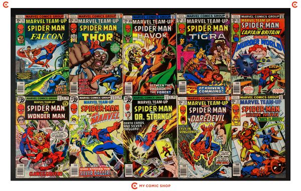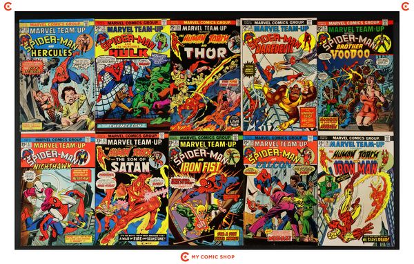 Issues 29-38 of Marvel Team-Up (1972 1st Series). Most will grade in the VG to FN range.
