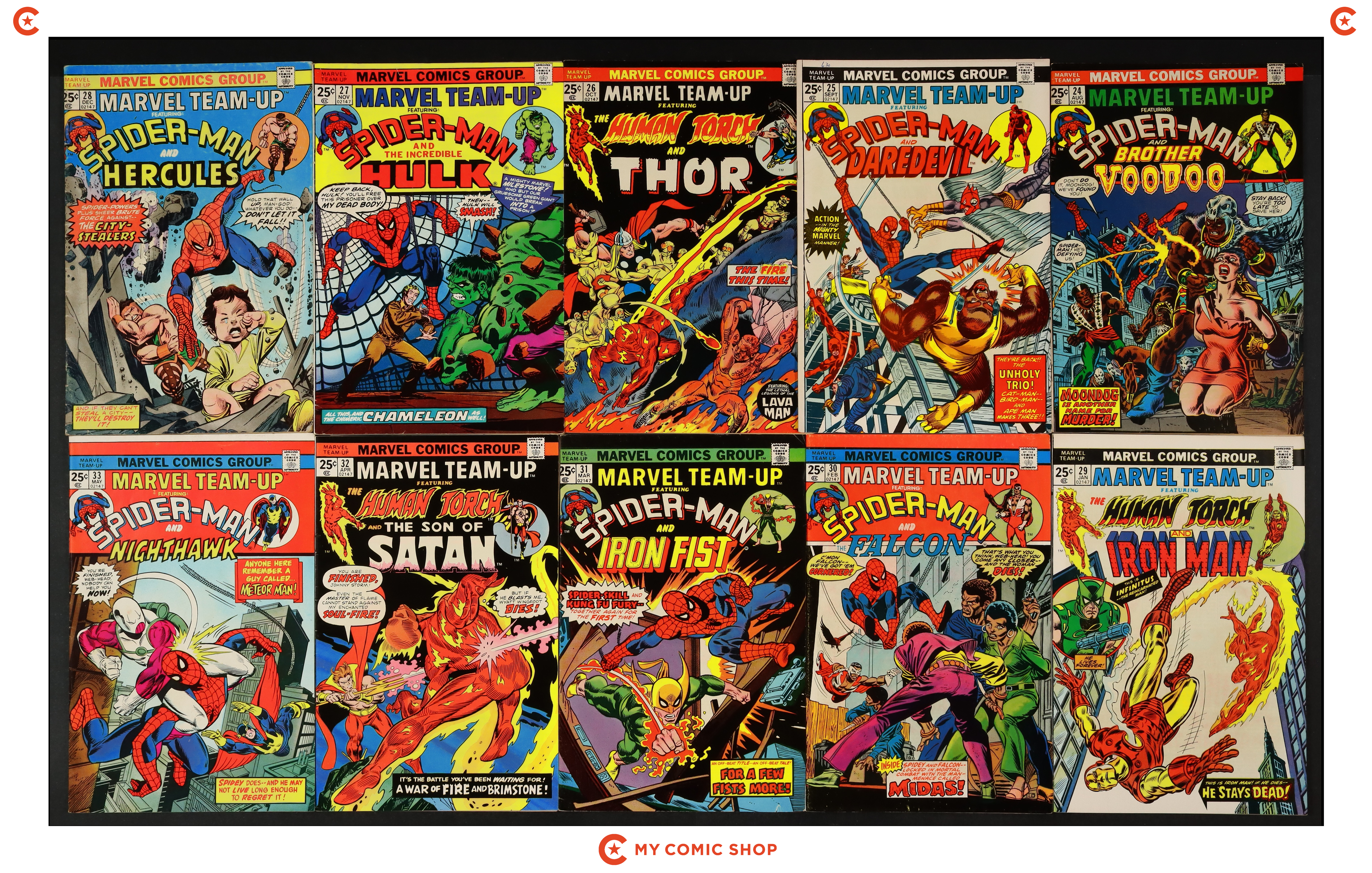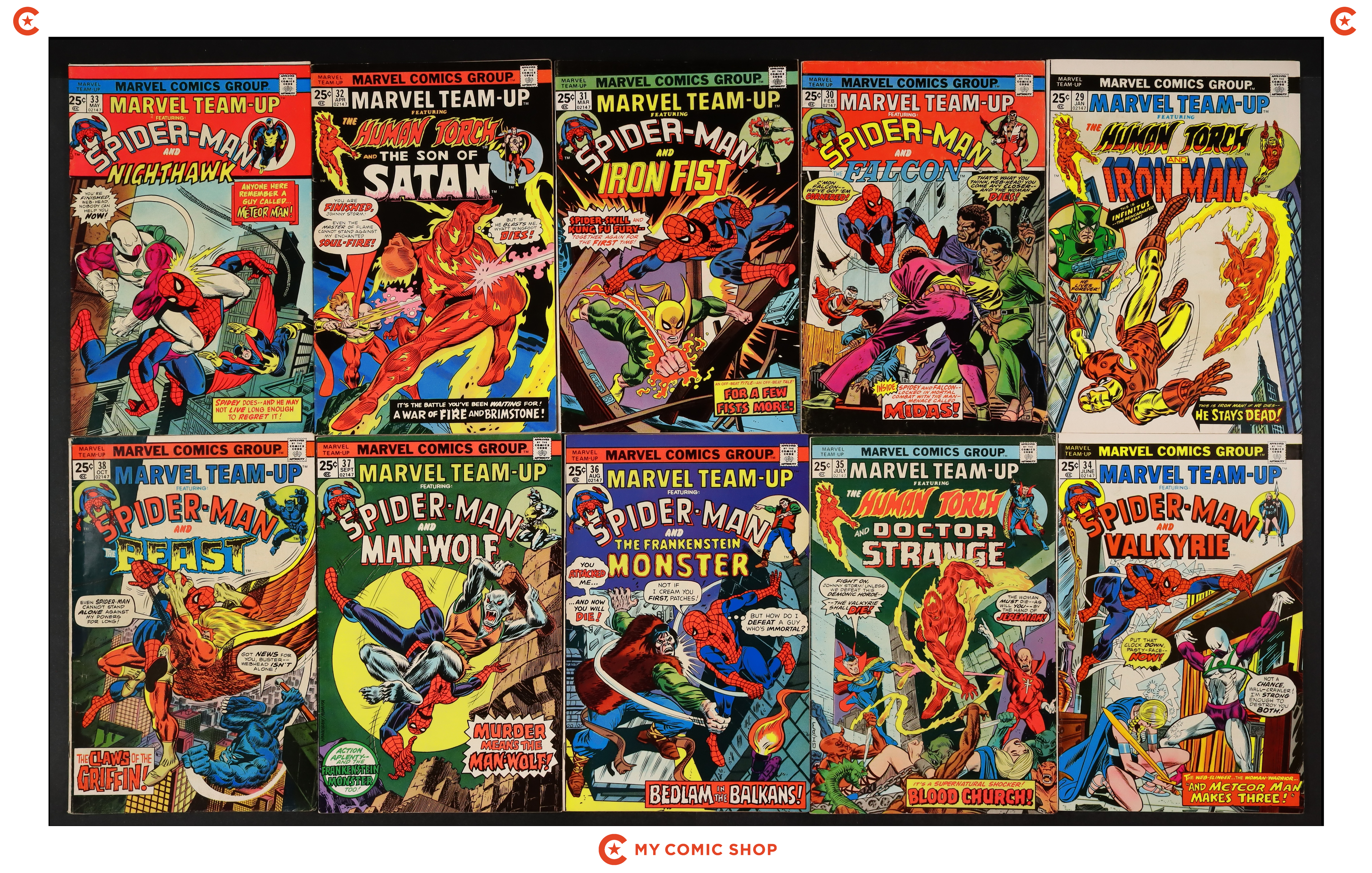 Issues 24-33 of Marvel Team-Up (1972 1st Series). Most will grade in the VG to FN range.