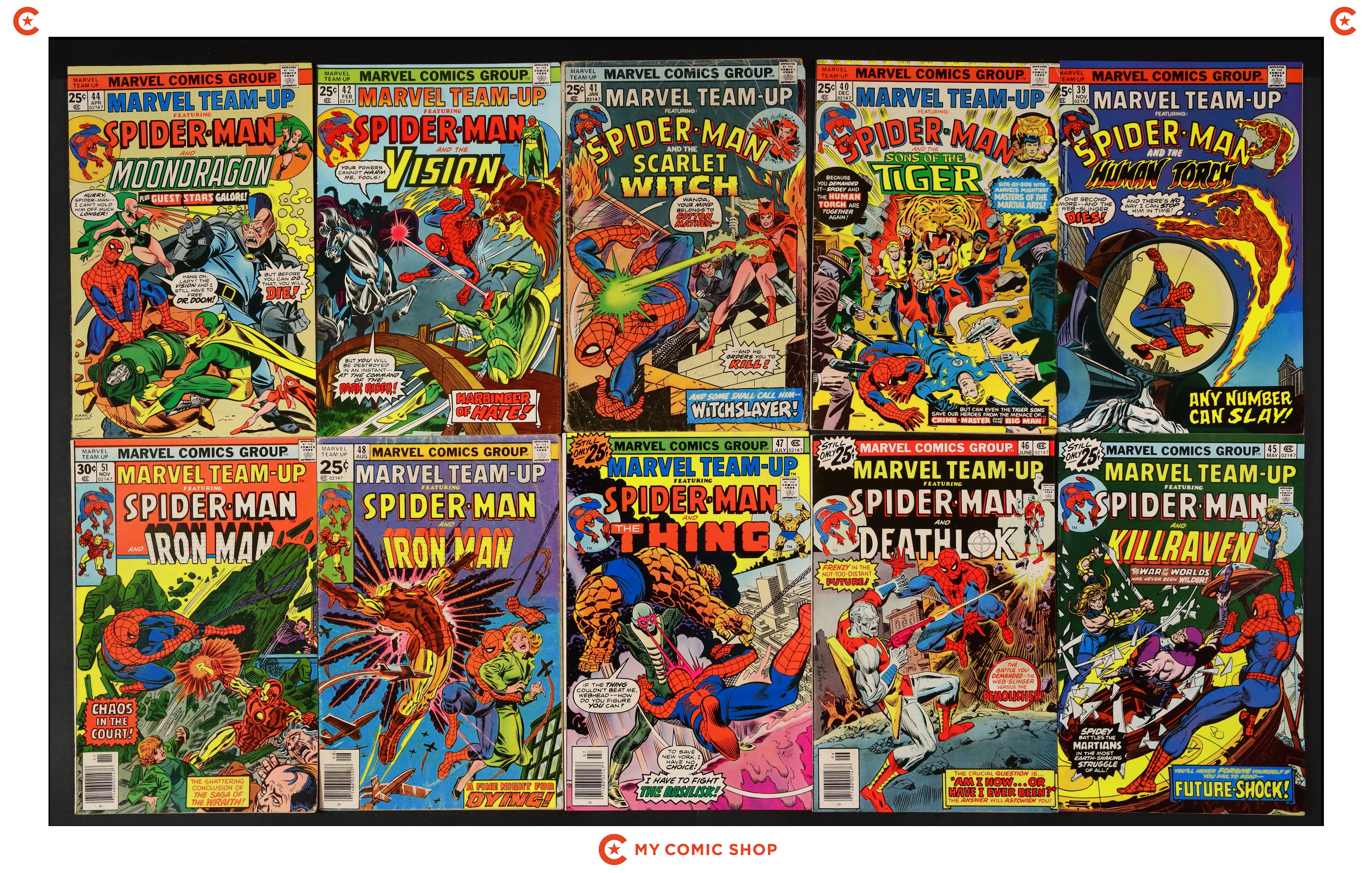Issues 39-42, 44-47MJ, 48, 51 of Marvel Team-Up (1972 1st Series). Most will grade in the VG to FN range with #41, #48, #51Grading GD and #42 grading FR.