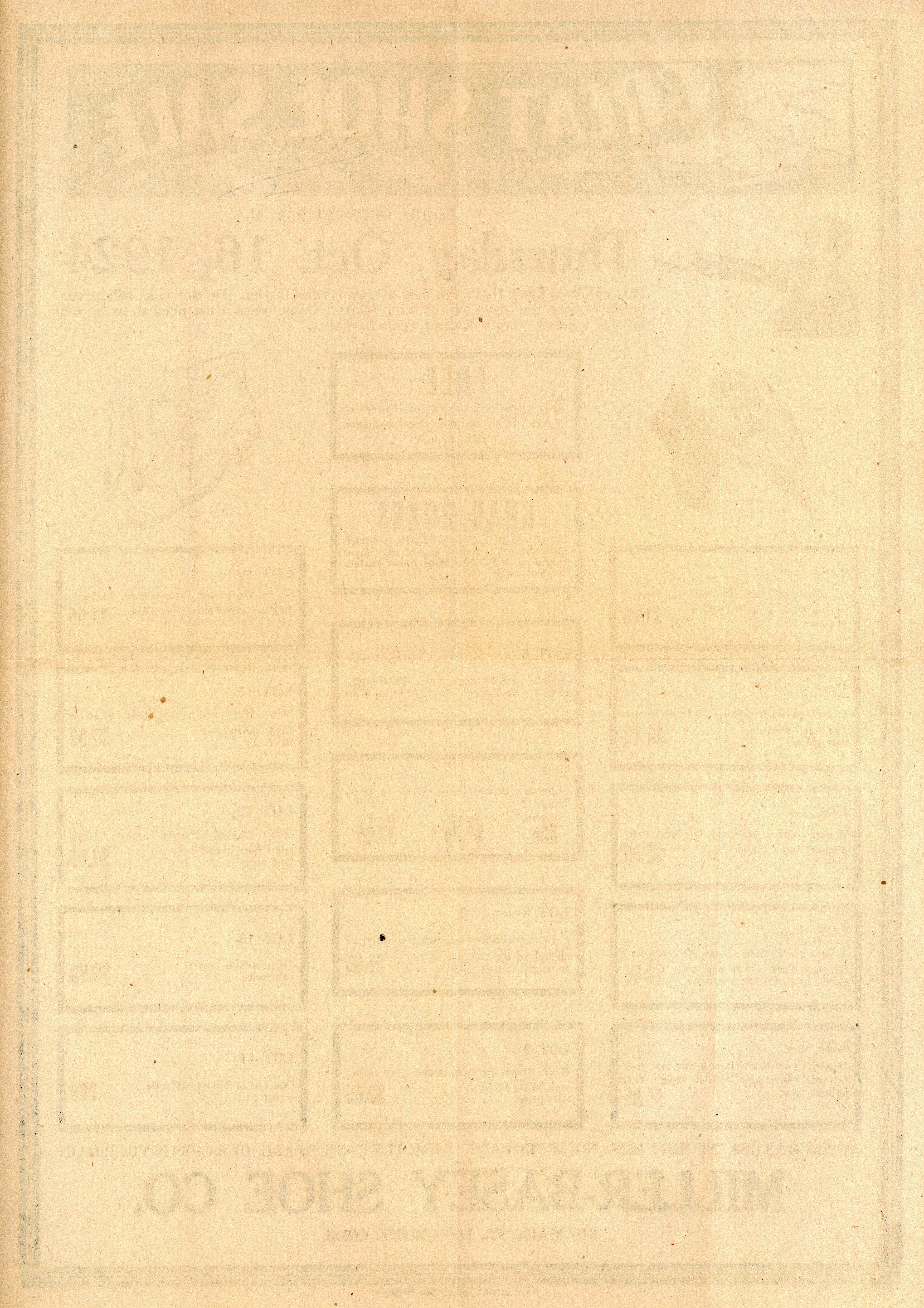 Miller-Basey Shoe Co. Window Sale Sign (1924)Published 1924Miller-Basey Shoe Co. Window Sale Sign (1924)