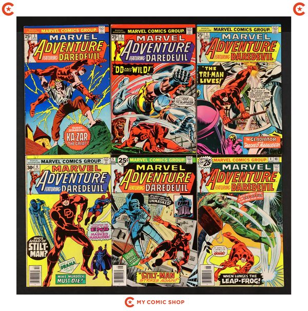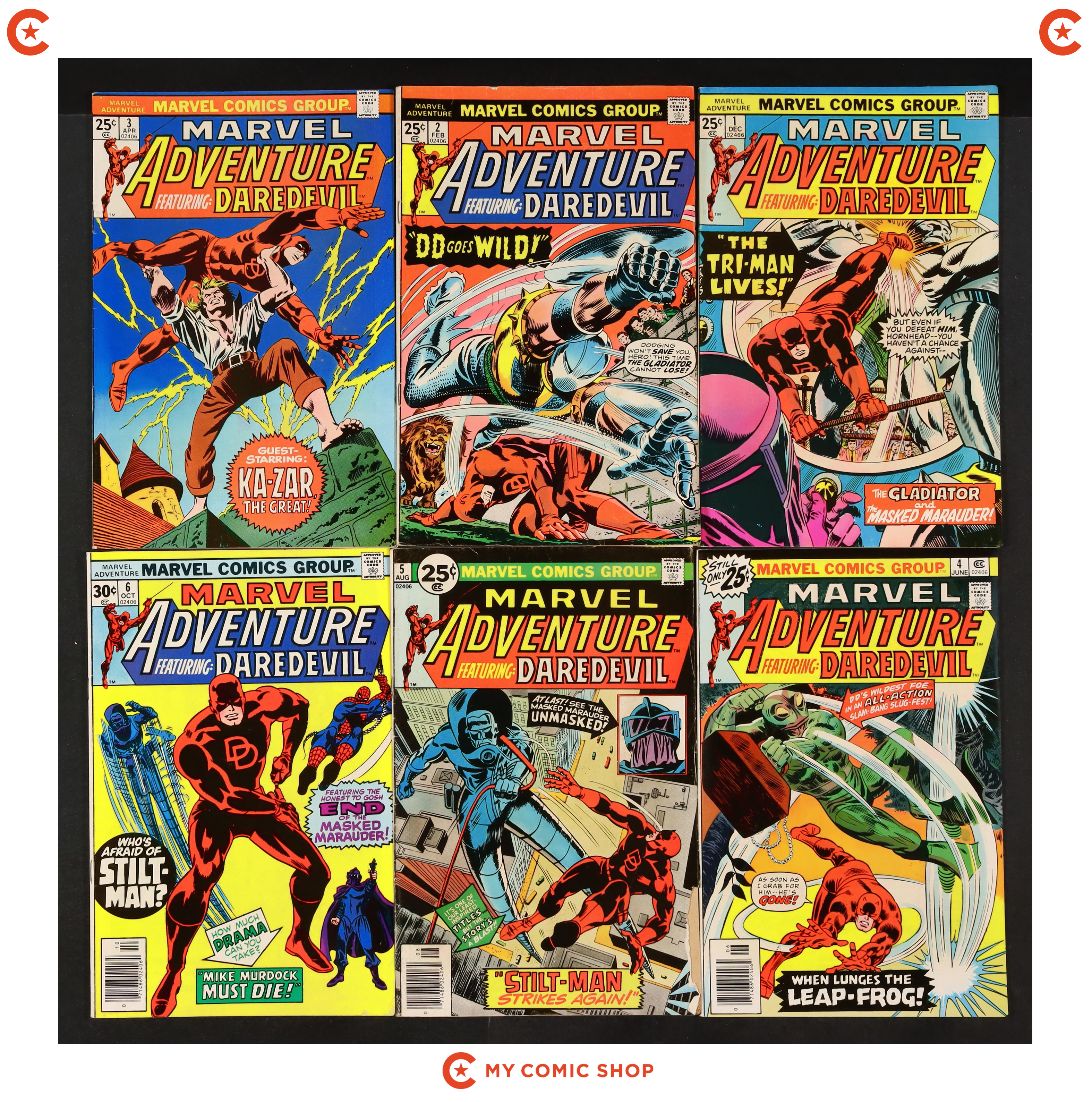 Issues 1-6 of Marvel Adventure featuring Daredevil (1975). Most will grade in the VG to FN range.