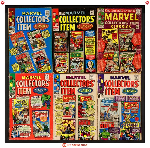 Issues 1, 5, 6, 7, 9, 10, 11, 12, and 13 of Marvel Collectors Item Classics (1966). Most will grade in the GD to VG range with #1 Grading PR (Book is complete, full length spine split and accumulation of damage).
