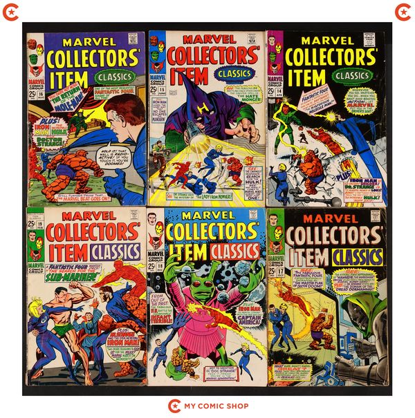 Issues 14, 15, 16, 17, 18, 19, 20, 21, and 22 of Marvel Collectors Item Classics (1966). Most will grade in the GD to VG range.