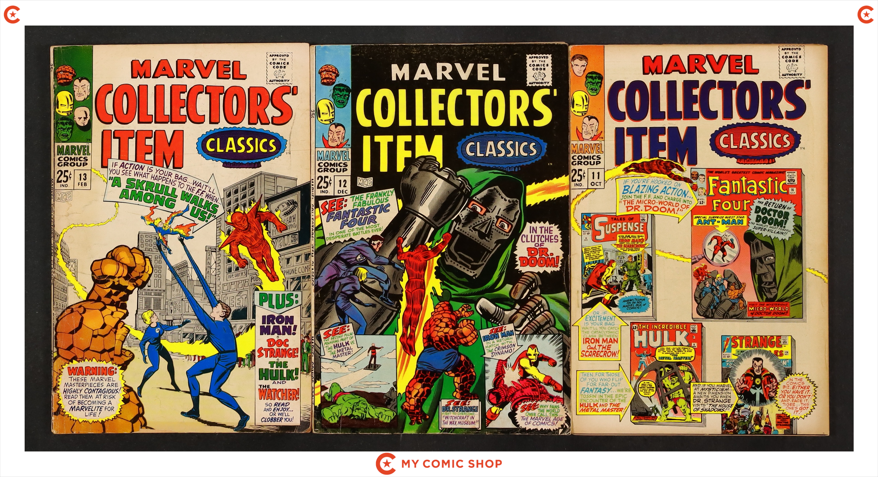 Issues 1, 2, 4, 5, 6, 7, 8, 9, 10, and 11 of Marvel Collectors Item Classics (1966). Most will grade in the GD to VG range with #1, and #2 grading FR.