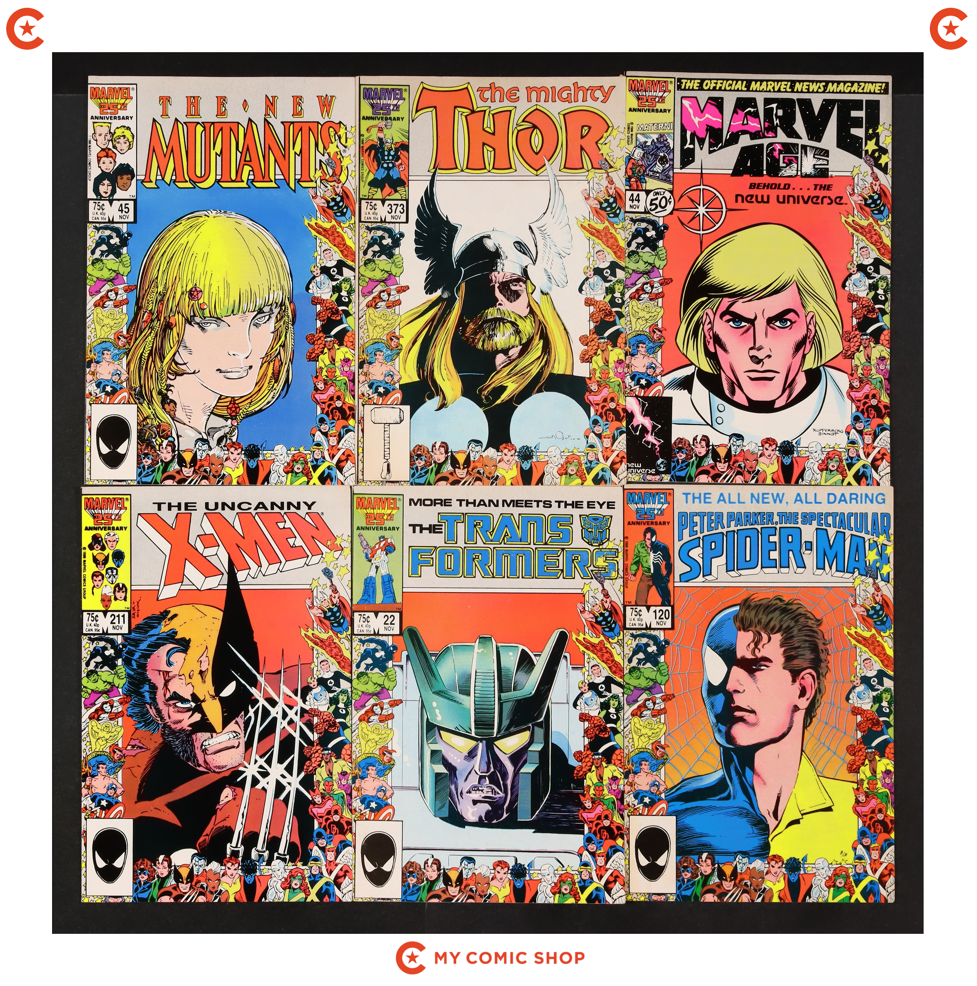 Issue 44 of Marvel Age (1983 Marvel), issue 373 of Thor (1962 Marvel 1st Series Journey Into Mystery), issue 45D of New Mutants (1983 1st Series), issue 120D of Spectacular Spider-Man (1976 1st Series), issue 22 of Transformers (1984 Marvel), issue 211D of Uncanny X-Men (1963 1st Series), issue 20 of Web of Spider-Man (1985 1st Series), issue 14 of Avengers West Coast (1985), and issue 10 of X-Factor (1986 1st Series Marvel). Most will grade in the FN to VF range with #373 and #20 grading VG.