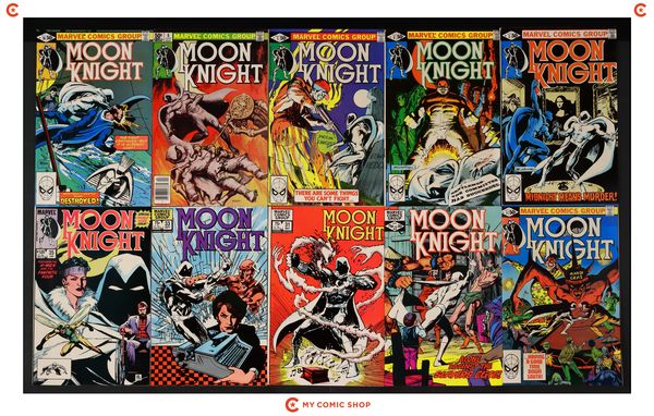 Issues 3D, 4, 5D, 6N, 10, 11, 18, 31, 33, and 35 of Moon Knight (1980 1st Series). Most will grade in the VF to FN+ range with #4 grading in the GD range.
