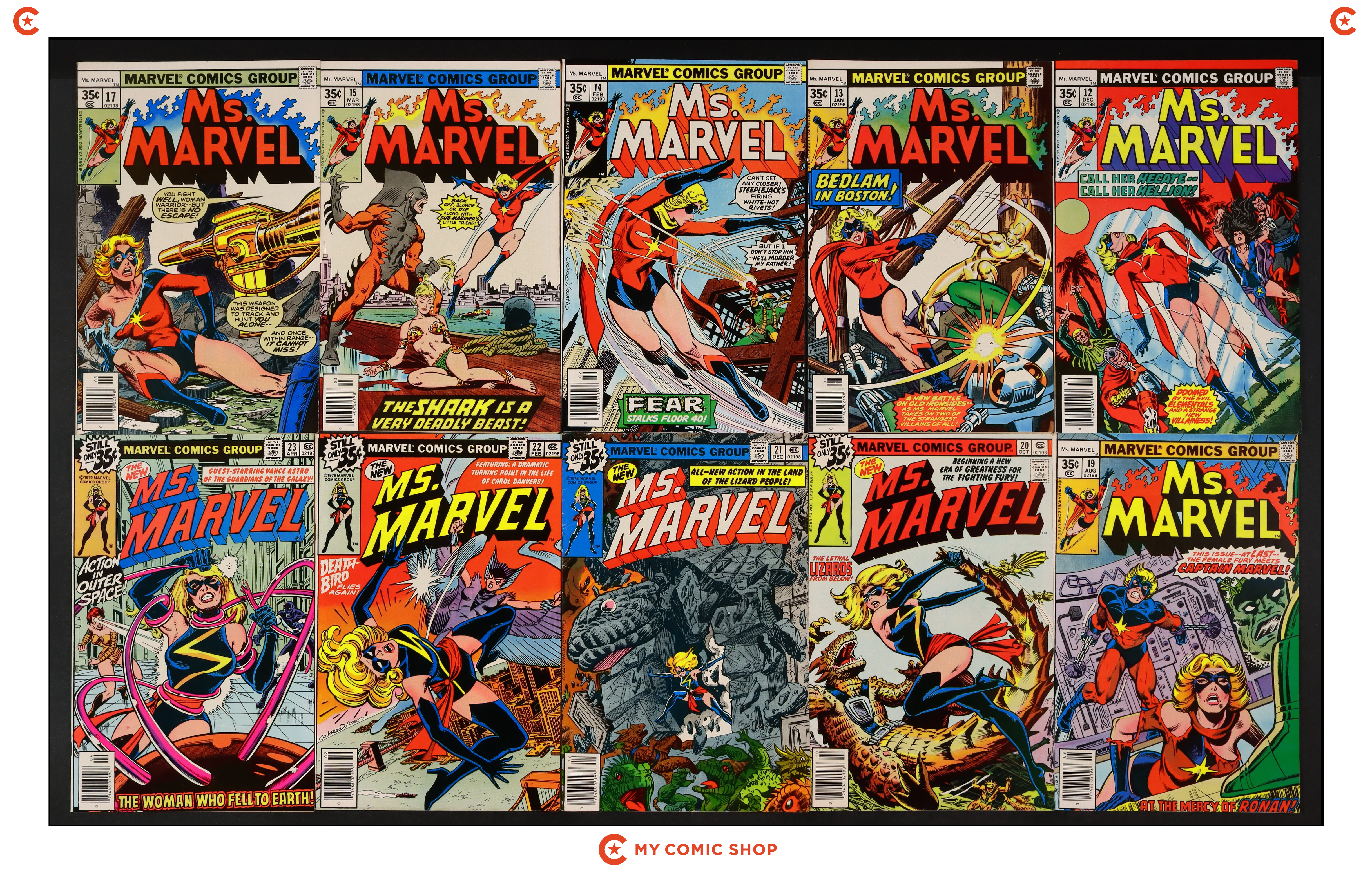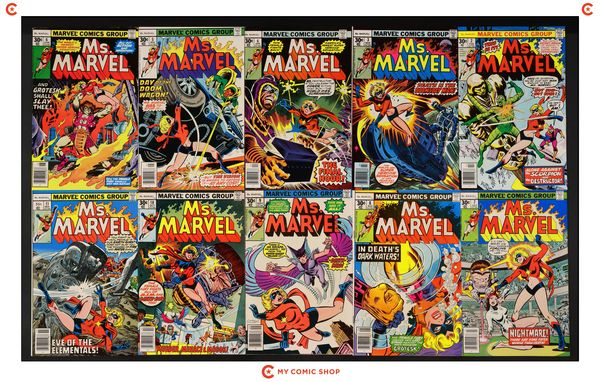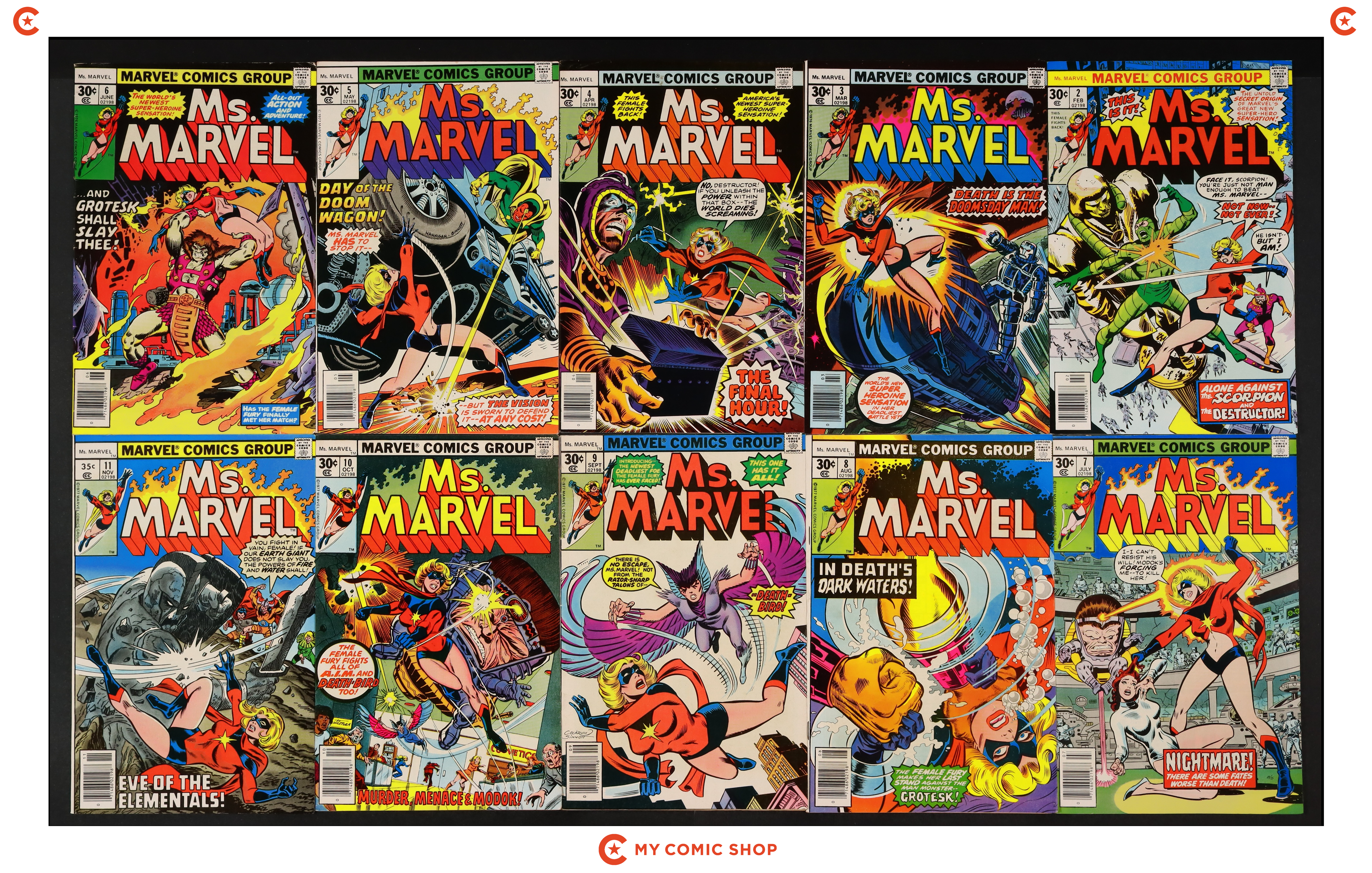 Issues 2-11 of Ms. Marvel (1977 1st Series). Most will grade in the VG/FN to FN/VF range.