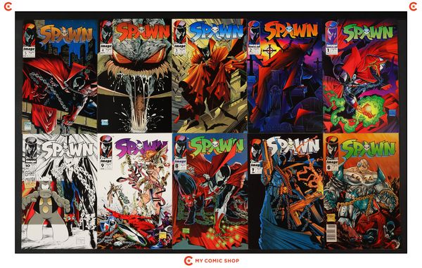 Issues 1A.D, 2D-5D, 6N, 7D-13D of Spawn (1992 Image). Most will grade in the VG+ to VF- range, with #3 grading at GD.