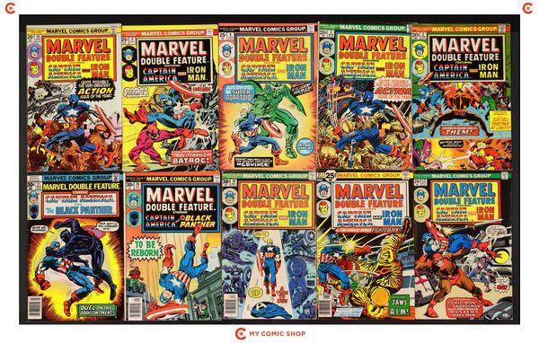 Issues 2, 3, 8, 9, 10, 12, 17, 19, 20, and 21 of Marvel Double Feature (1973 Marvel). Most will grade in the VG to FN range.