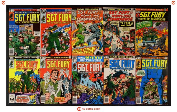 Issues 113, 123, 131, 151, 156, 158-160, 163, and 166 of Sgt. Fury (1963). Most will grade in the FN to VG range.