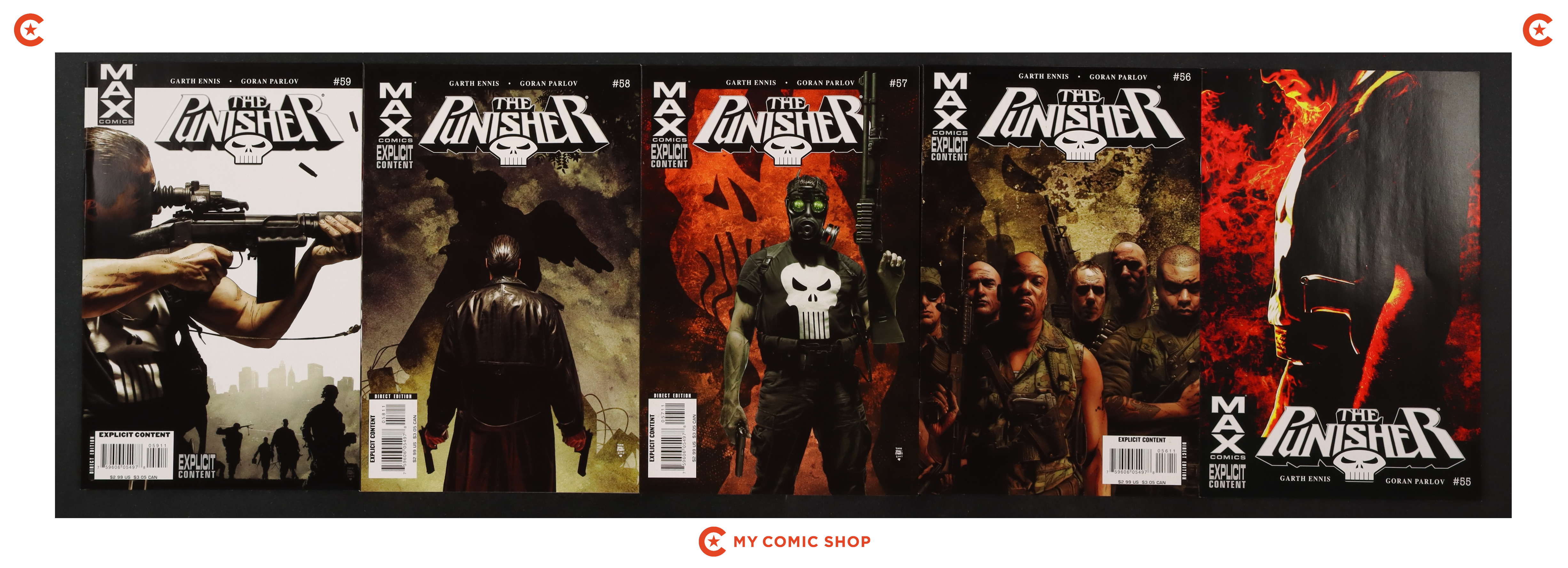 Issues 55, 56, 57, 58, 59 of Punisher (2004 7th Series) Max. Most will grade in the VF range.