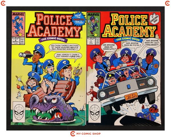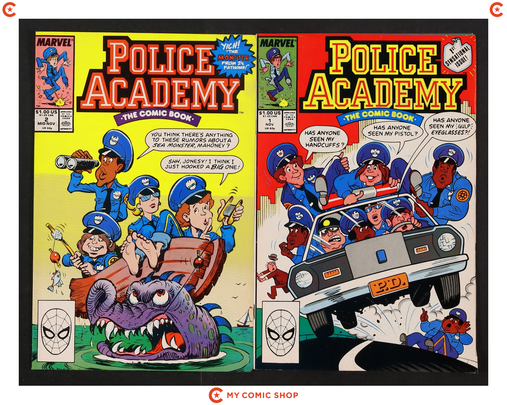 Issues 1, and 2 of Police Academy (1989). Most will grade in the VG to FN range.