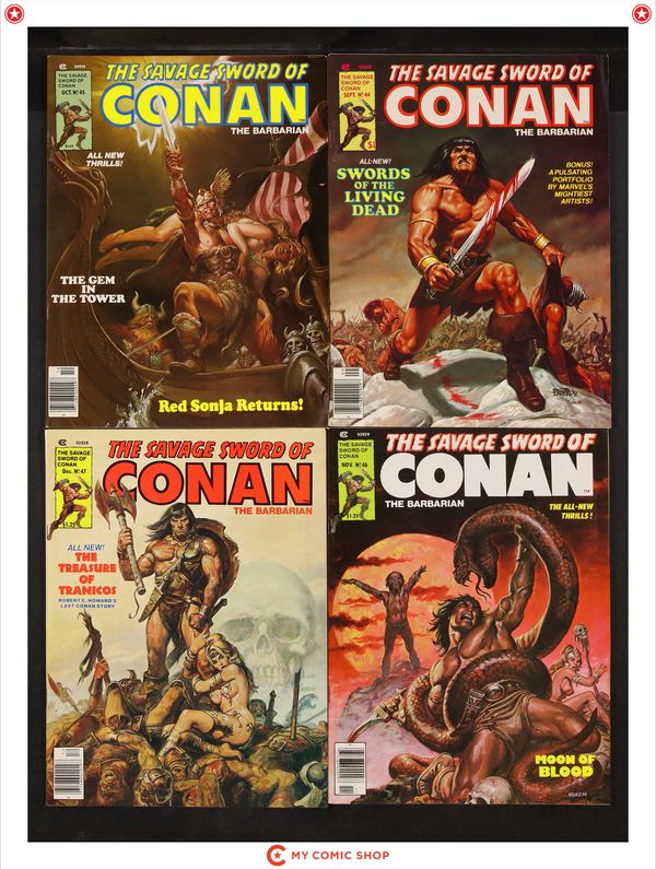Issues 34 and 39-47 of Savage Sword of Conan (1974 Marvel). Most will grade in the VF to FN range.