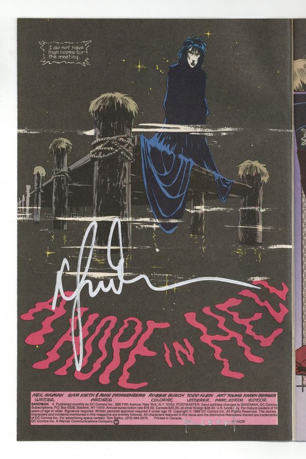 Signed by Dave McKean (cover), Sam Kieth (splash), and Neil Gaiman (splash). Certification is not included.
